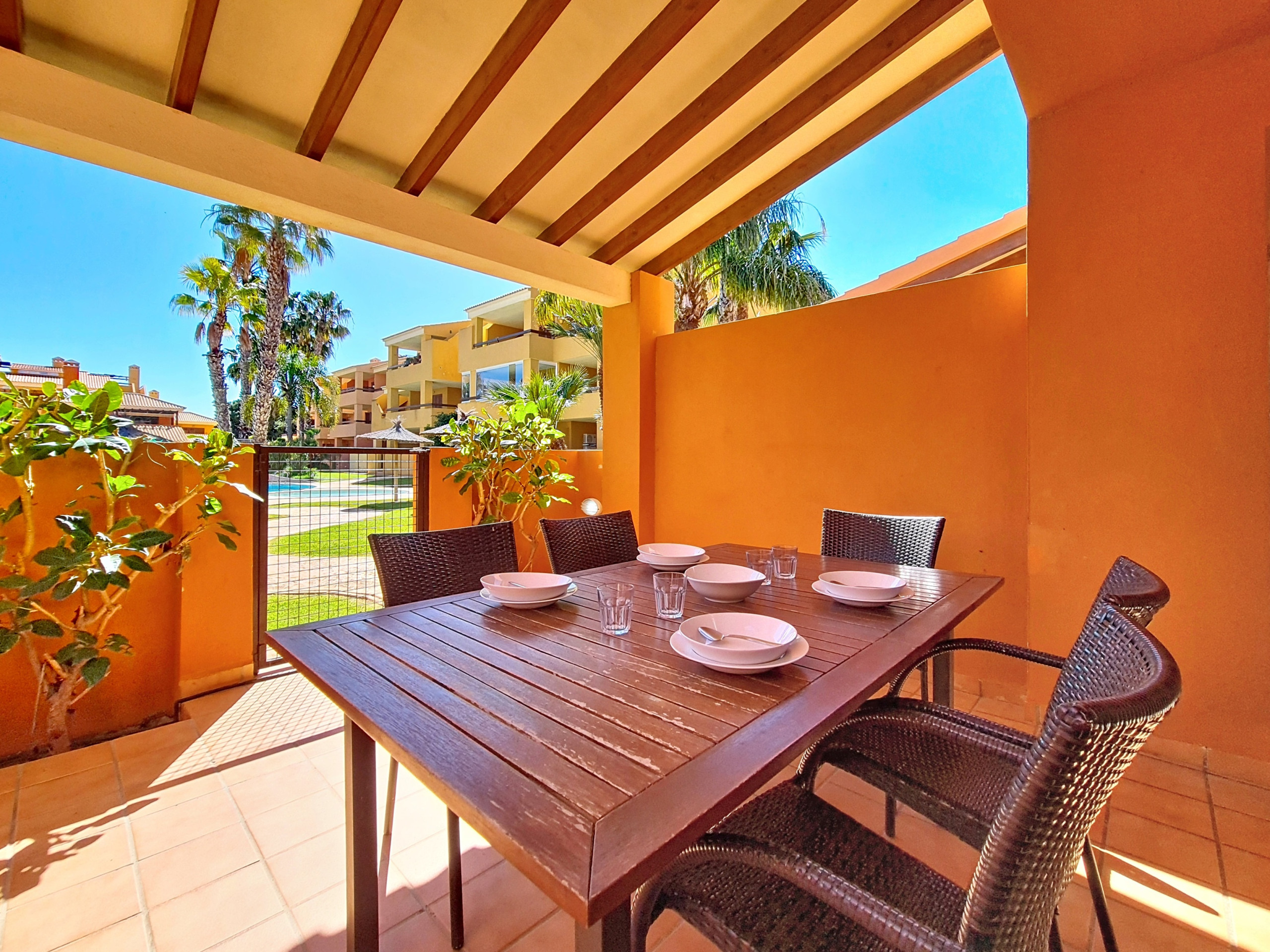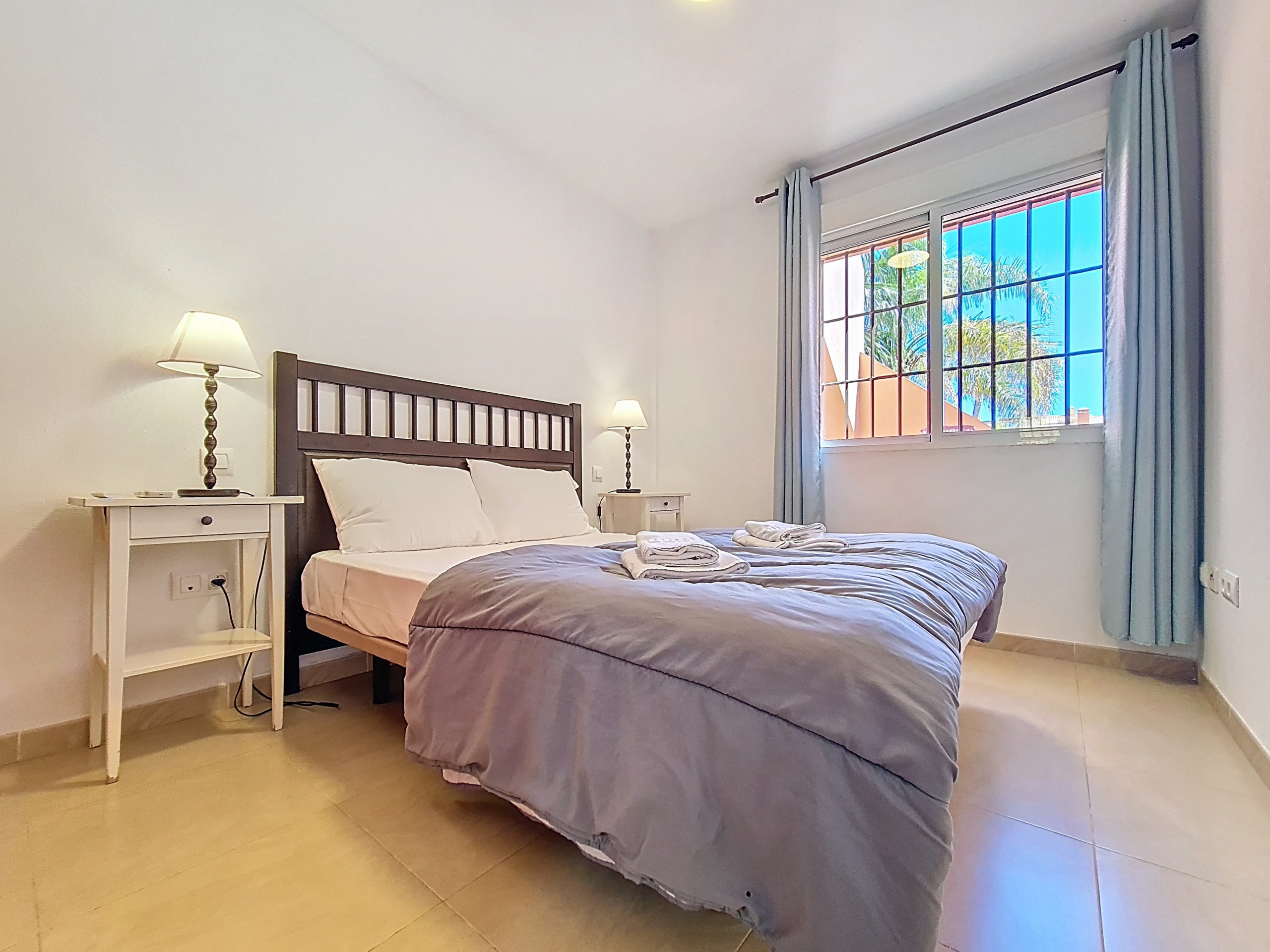 Die Immobilie bietet zwei gut proportionierte Schlafzimmer und ein modernes Familienbadezimmer und bietet komfortable Unterkunft für einen erholsamen Aufenthalt. Im Inneren befindet sich eine voll ausgestattete Küche zusammen mit einem separaten Wirtschaftsbereich, ideal zum Selbstkochen. Der helle Wohnbereich öffnet sich zu einer privaten hinteren Terrasse, die direkten Zugang zum Poolbereich bietet - perfekt für das Genießen des Lebens im Freien.