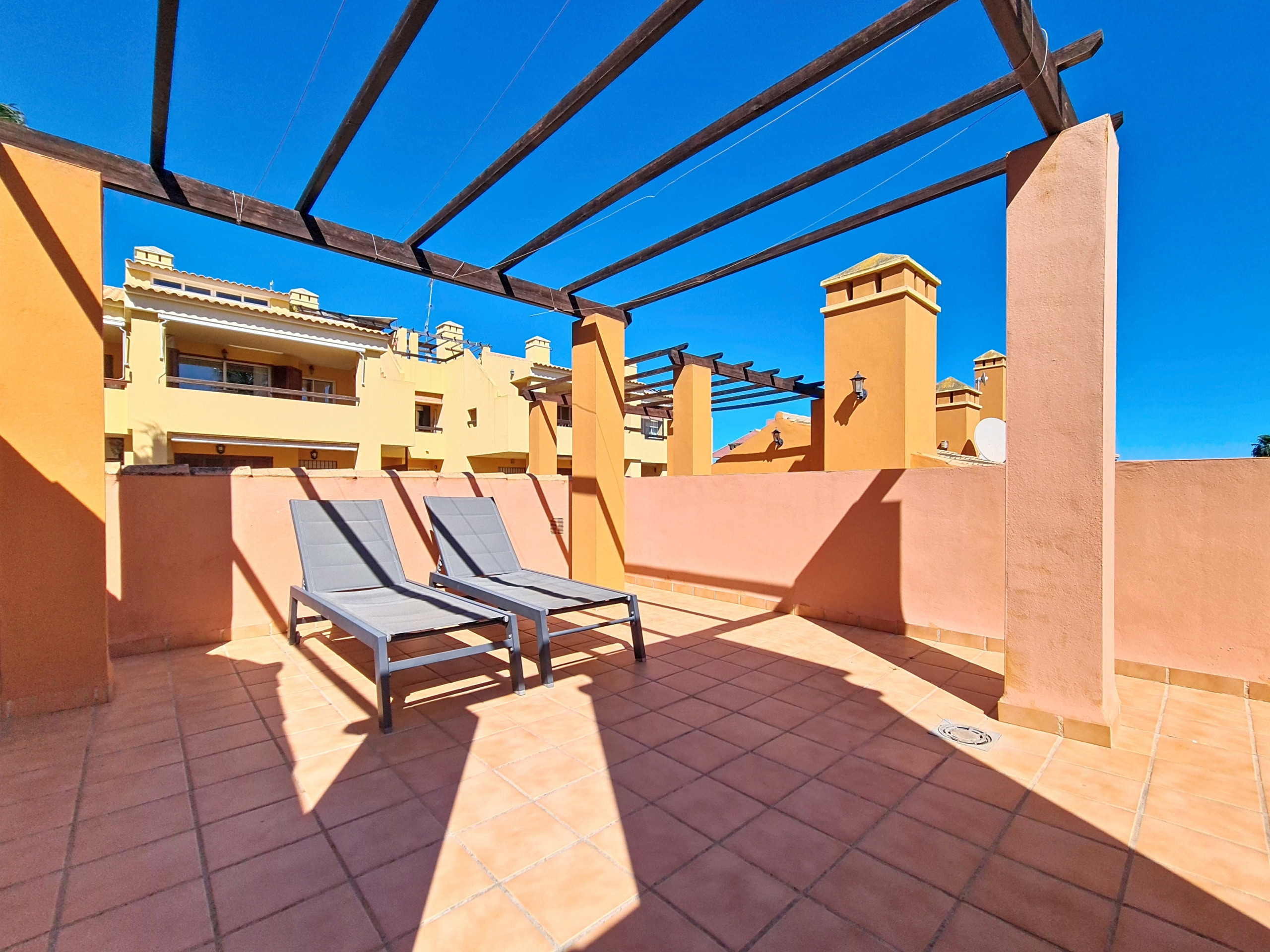 Dieser neue und moderne Bungalow befindet sich im beliebten Arona Komplex in der Nähe der Strände von Mar Menor in Mar de Cristal. Die Anlage verfügt über einen bezaubernden begrünten Poolbereich und es gibt von der Terrasse einen direkten Zugang dazu.
