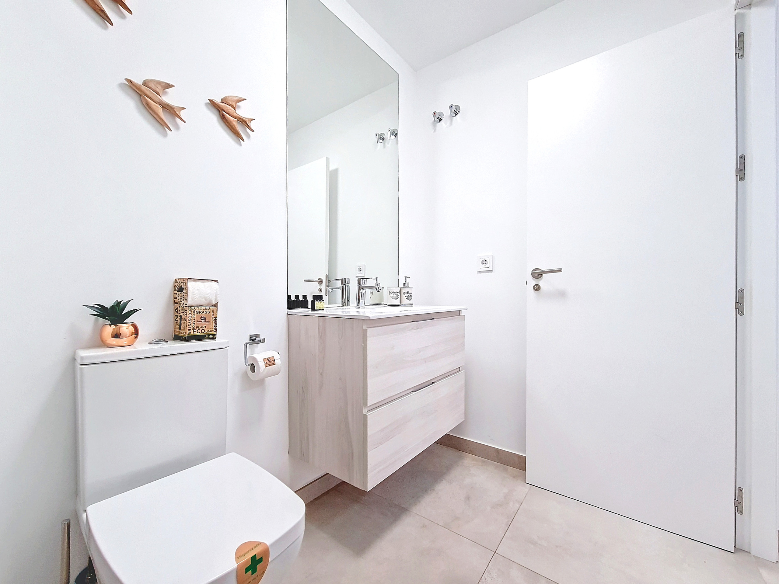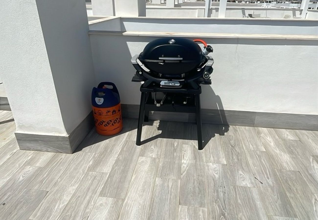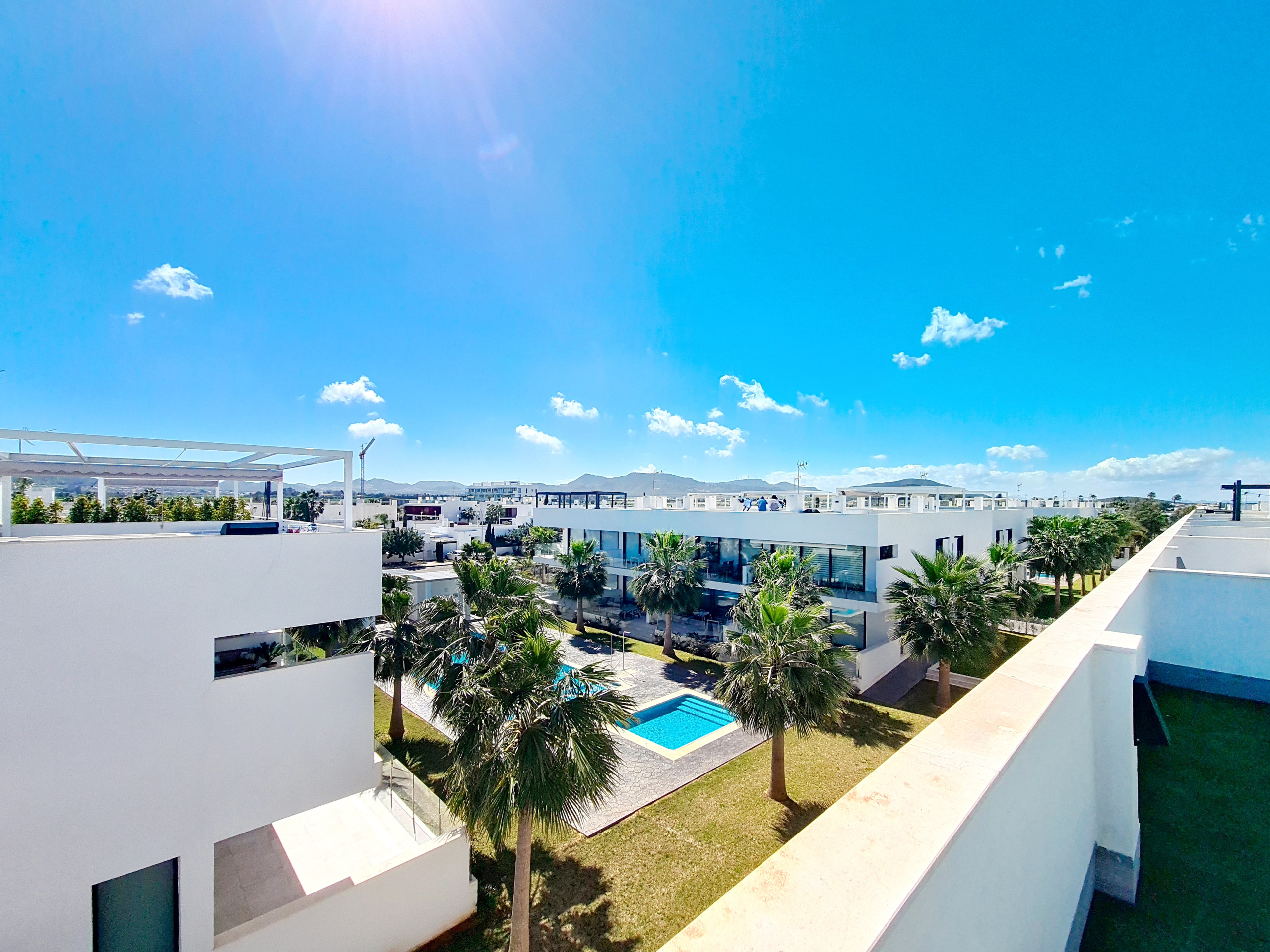 Ein Highlight dieser Wohnung ist die großzügige private Dachterrasse, die zum Entspannen und für gesellige Stunden einlädt. Dieser großzügige Außenbereich verfügt über einen großen Tisch und Stühle, eine gemütliche Sitzecke für abendliche Drinks und Sonnenliegen, um die spanische Sonne zu genießen. Von hier aus genießen Sie einen atemberaubenden Panoramablick auf die umliegenden Berge und das kristallklare Wasser des Mar Menor. Ob Sie tagsüber Sonne tanken, unter dem Sternenhimmel speisen oder einfach bei einem Glas Wein die herrliche Landschaft bewundern möchten – diese spektakuläre Terrasse bietet zu jeder Tageszeit den perfekten Rahmen.