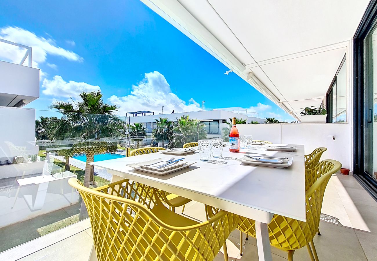 Dieses herrliche Apartment in einer ruhigen und begehrten Wohngegend ist ideal für einen erholsamen Urlaub. Große Fenster durchfluten den Innenraum mit Tageslicht und bieten einen malerischen Blick auf den makellosen Gemeinschaftspool – die perfekte Kulisse für einen erholsamen Aufenthalt.