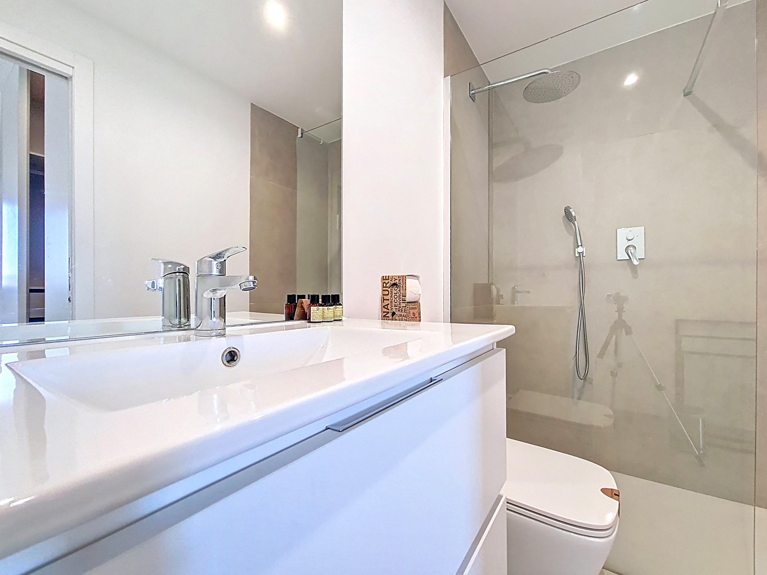 Es gibt zwei komfortable Schlafzimmer, beide im modernen Stil eingerichtet. Das Hauptschlafzimmer verfügt über ein angrenzendes Badezimmer mit einer begehbaren Dusche sowie einen begehbaren Kleiderschrank, der hervorragenden Stauraum bietet. Das zweite Schlafzimmer verfügt über eingebaute Kleiderschränke und wird von einem separaten, modern ausgestatteten Badezimmer mit einer begehbaren Dusche bedient.