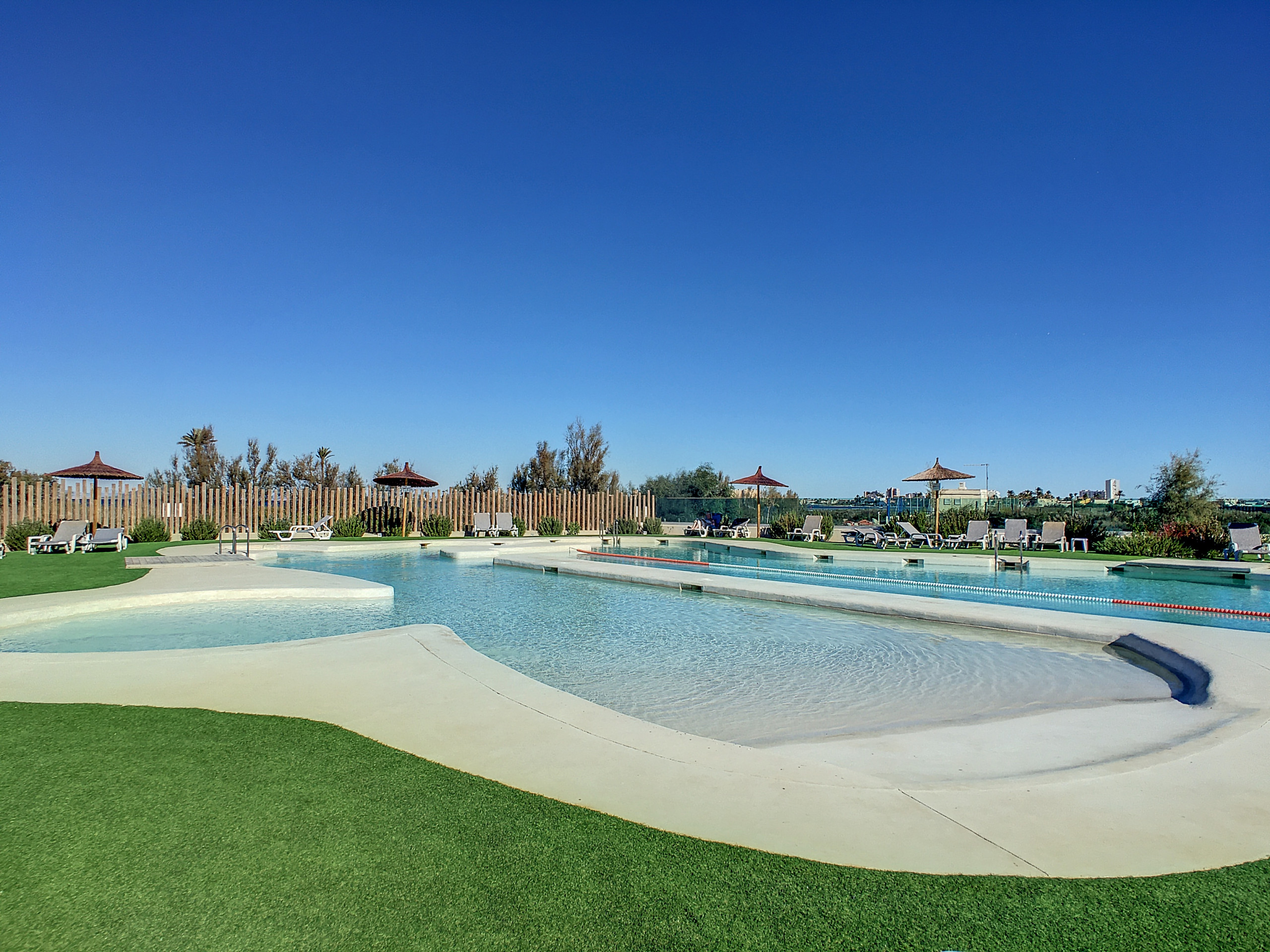 Der Komplex ist vollgepackt mit Funktionen, darunter ein großer Poolbereich, eine Chill-out-Zone, ein Fitnessraum, ein Spielbereich für Kinder, ein Spa, ein Sportbereich mit Volleyball und Boccia, ein Vogelbeobachtungsversteck, ein Spielzimmer und ein mediterraner Garten.