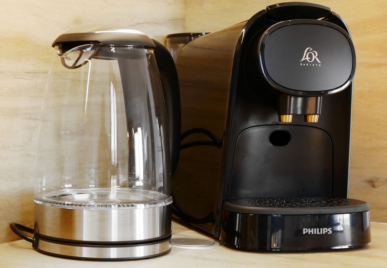 Der offene Wohn-, Ess- und Küchenbereich ist hell und einladend, mit modernen Geräten, einschließlich Geschirrspüler und Kaffeemaschine und allem, was Sie für einen erholsamen Aufenthalt benötigen. Eine kleine Außenterrasse direkt am Wohnbereich verfügt über einen Tisch und Stühle, die perfekt sind, um Ihren Morgenkaffee zu genießen.