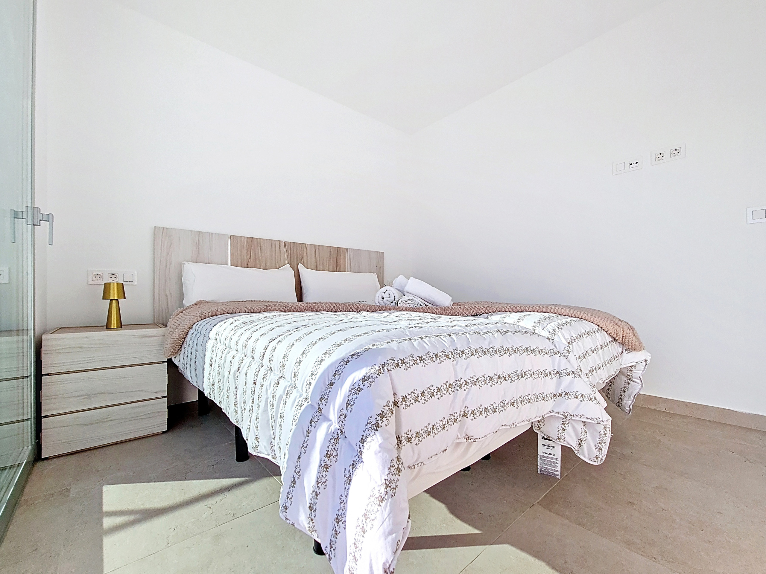 Die Villa verfügt über 3 Schlafzimmer, die durchdacht gestaltet sind. Im Erdgeschoss hat das Schlafzimmer direkten Zugang zu einem Badezimmer, das auch einen separaten Eingang vom Flur aus hat. Diese clevere Anordnung ermöglicht es, dass das Badezimmer sowohl als privates Ensuite-Bad als auch als Hauptbadezimmer im Erdgeschoss der Villa dient.