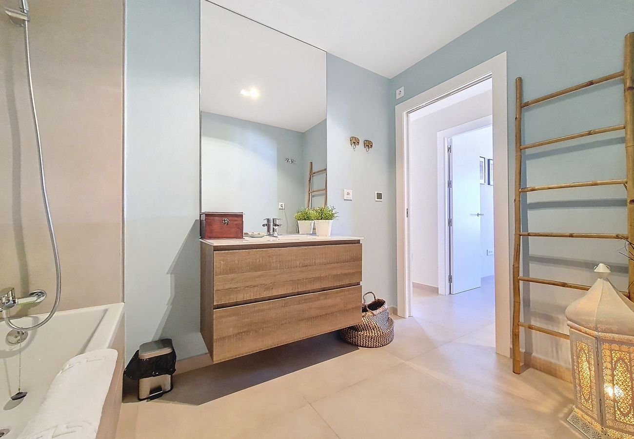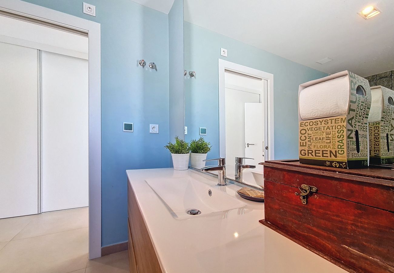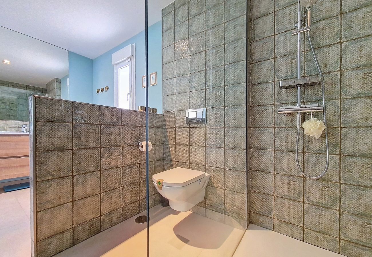 Die Villa verfügt über 3 Schlafzimmer und 2 Badezimmer. Das Hauptschlafzimmer ist hell und luftig und verfügt über Türen, die zum Poolbereich führen. Direkt daneben befindet sich ein geräumiges, modernes Badezimmer mit Toilette und ebenerdiger Dusche.