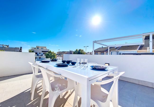 Die große Dachterrasse ist der perfekte Ort zum Entspannen. Sie verfügt über eine große Essbereich, was sie zu einem hervorragenden Ort für Mahlzeiten im Freien oder zum einfachen Genießen der Aussicht in einer ruhigen Umgebung macht.
