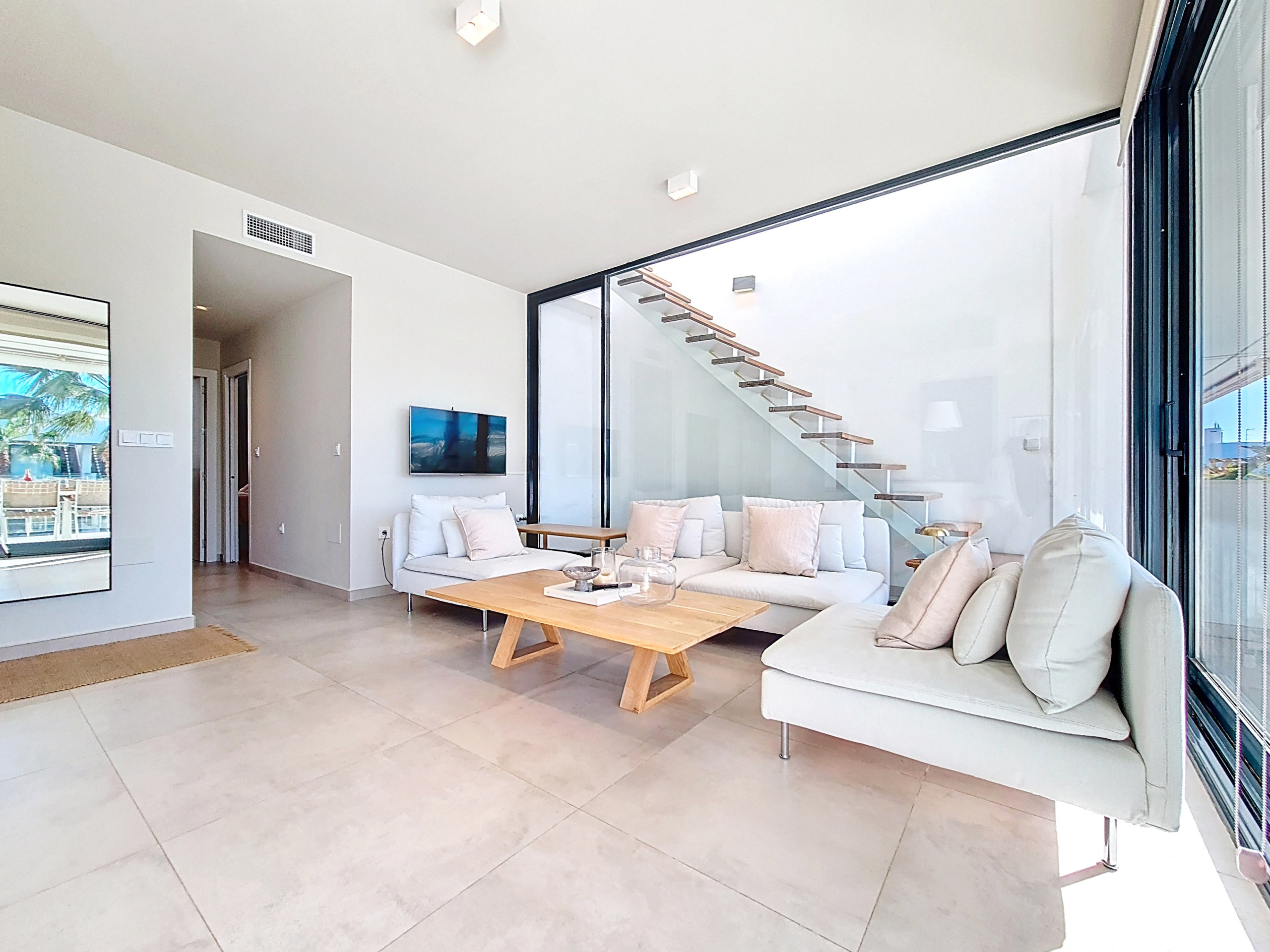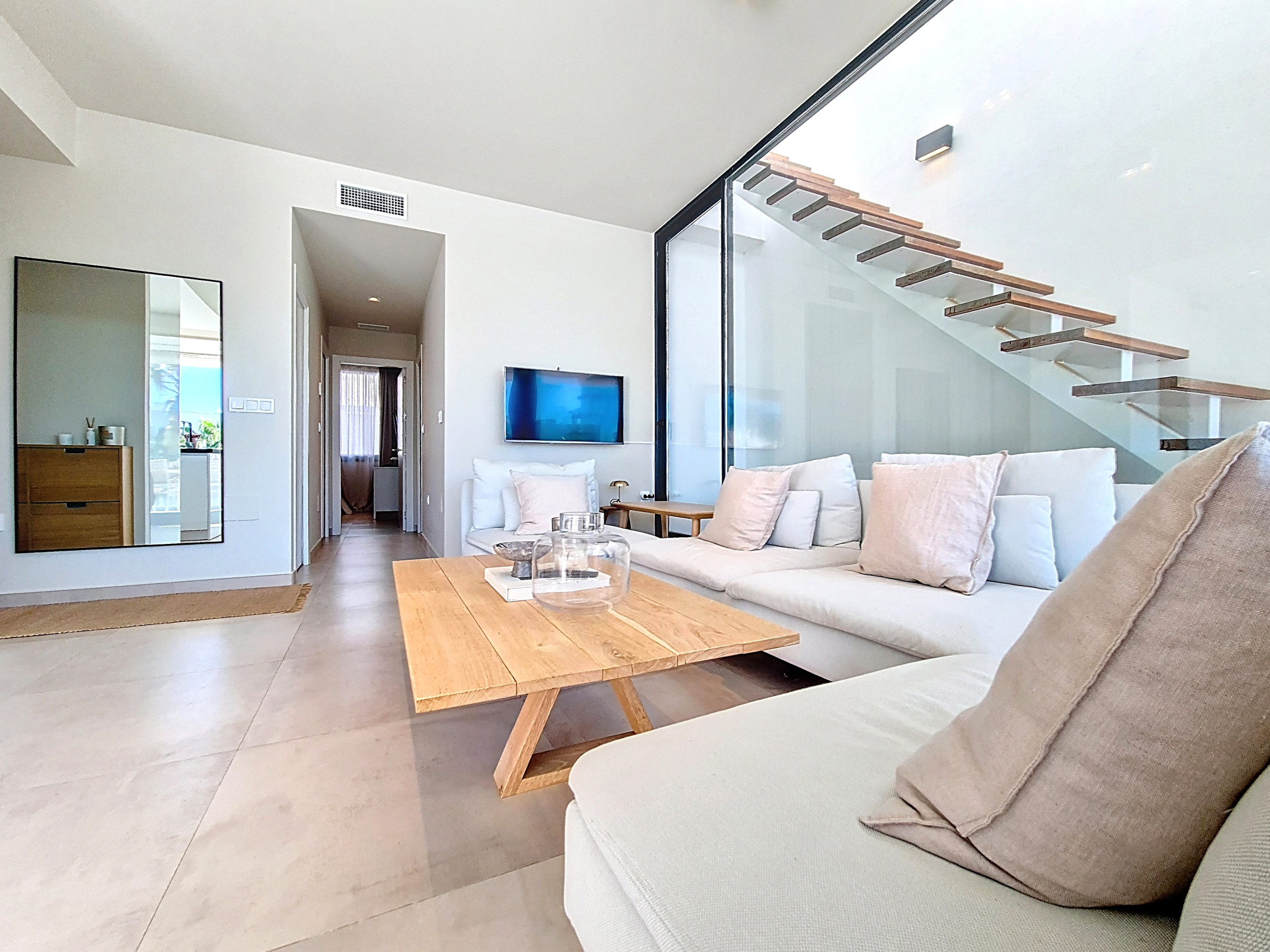 Un punto destacado de este ático es la amplia terraza privada en la azotea. Este espacio versátil incluye tumbonas y un área de asientos cómoda, perfecta para tomar bebidas o simplemente disfrutar de vistas panorámicas del Mar Menor y las montañas circundantes.