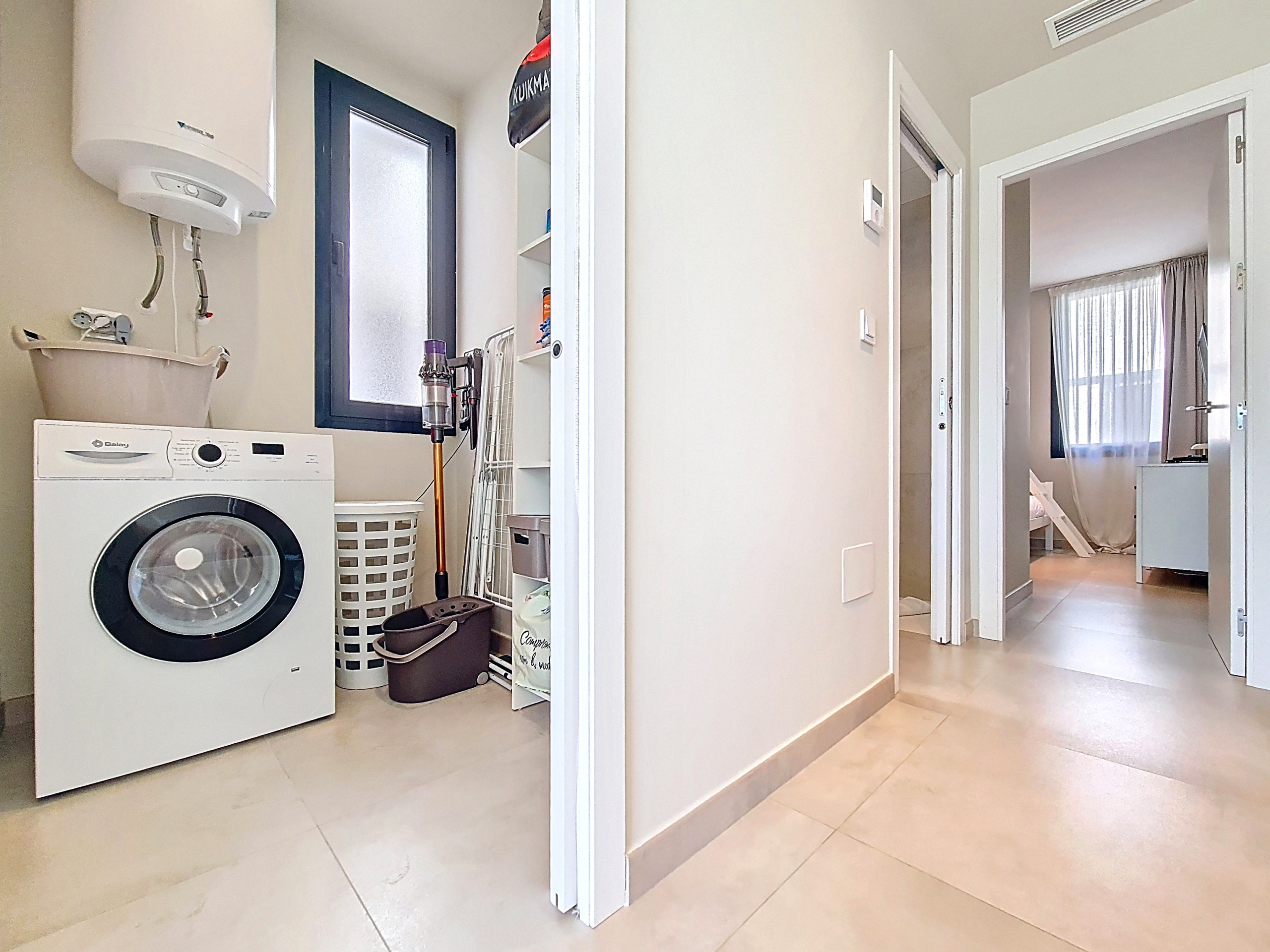 Este moderno ático está situado en el complejo Ribera Beach en Mar de Cristal. La propiedad consta de dos dormitorios con un baño. Hay una cocina completamente equipada, un salón comedor y un bonito balcón con unas escaleras para subir a una terraza privada con solárium donde podrá relajarse, tomar el sol, leer o comer al aire libre..El apartamento tiene televisión con canales en inglés y español. Hay una piscina comunitaria en el centro del complejo, que se encuentra a tan solo 5 minutos de distancia andando de la playa.