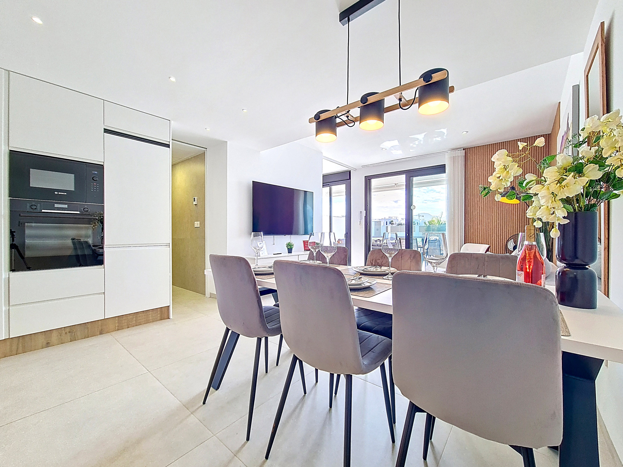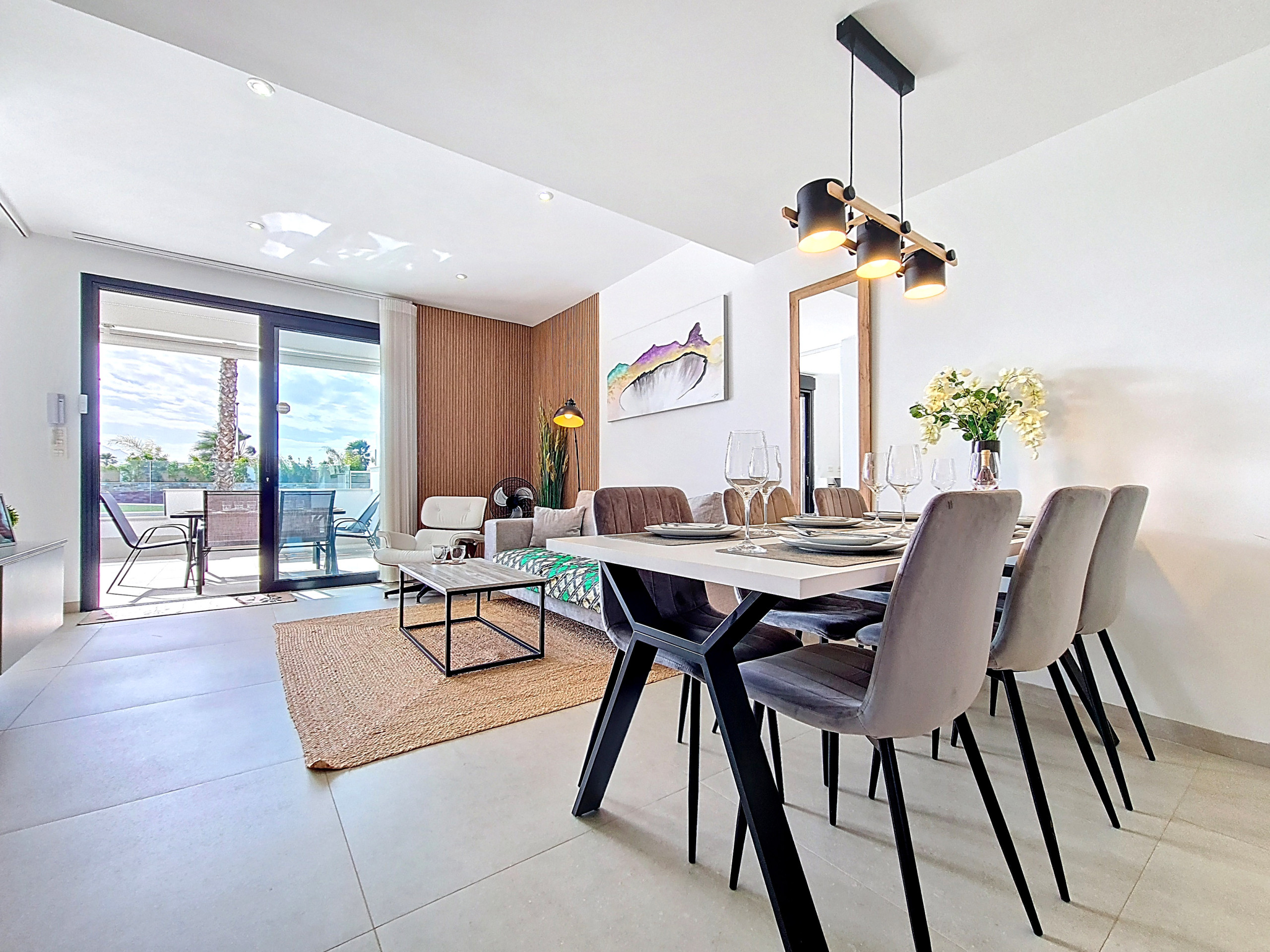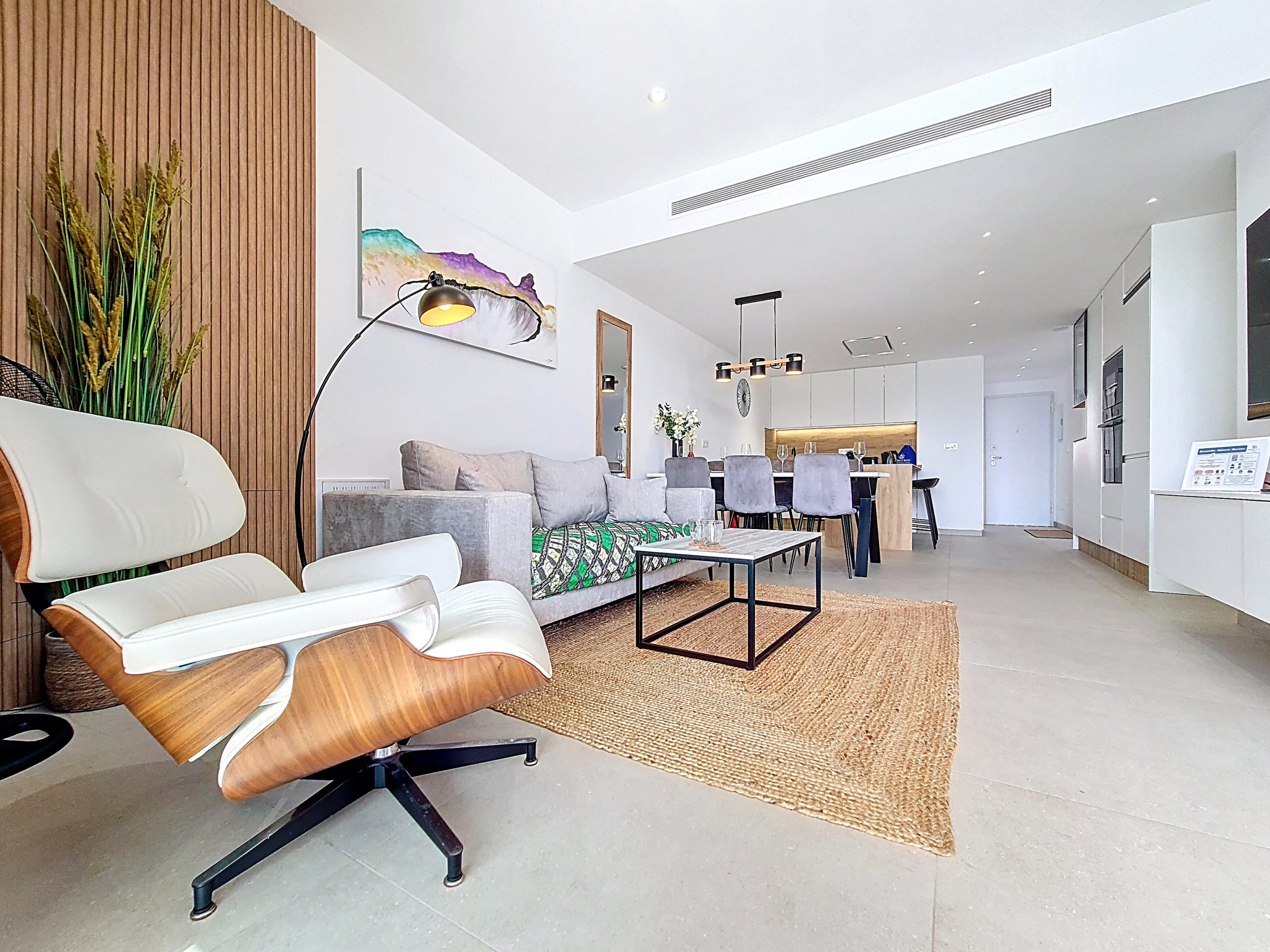 Este elegante apartamento de tres dormitorios en planta baja en La Llana Beach, Mar de Cristal, ofrece un interior moderno y decorado con buen gusto, ideal para una estancia relajada en la costa. Con un diseño cuidado, el apartamento combina la vida contemporánea con un uso flexible del espacio.