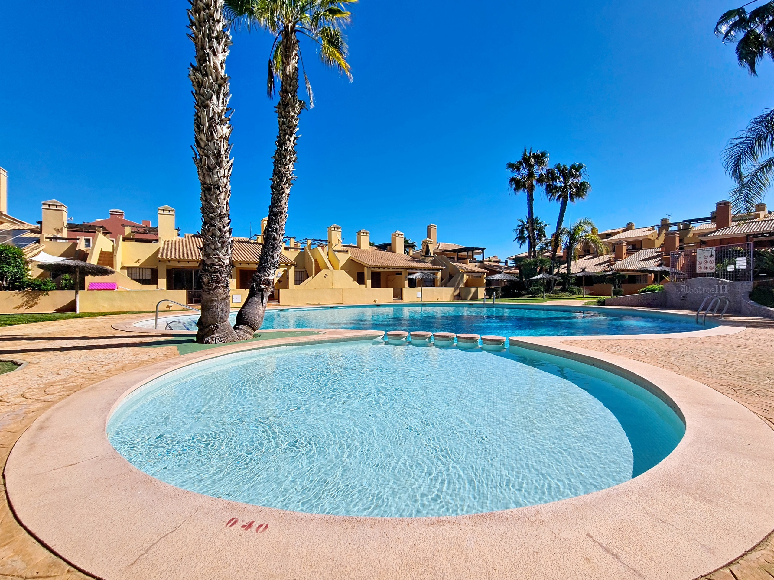 Este encantador bungalow está ubicado en el muy codiciado complejo Albatros 3, a solo un corto paseo de las tranquilas playas de arena del Mar Menor en Mar de Cristal. El complejo es conocido por sus hermosamente mantenidos jardines paisajísticos, centrados alrededor de un atractivo área de piscina comunitaria que crea un ambiente pacífico tanto para familias como para parejas.