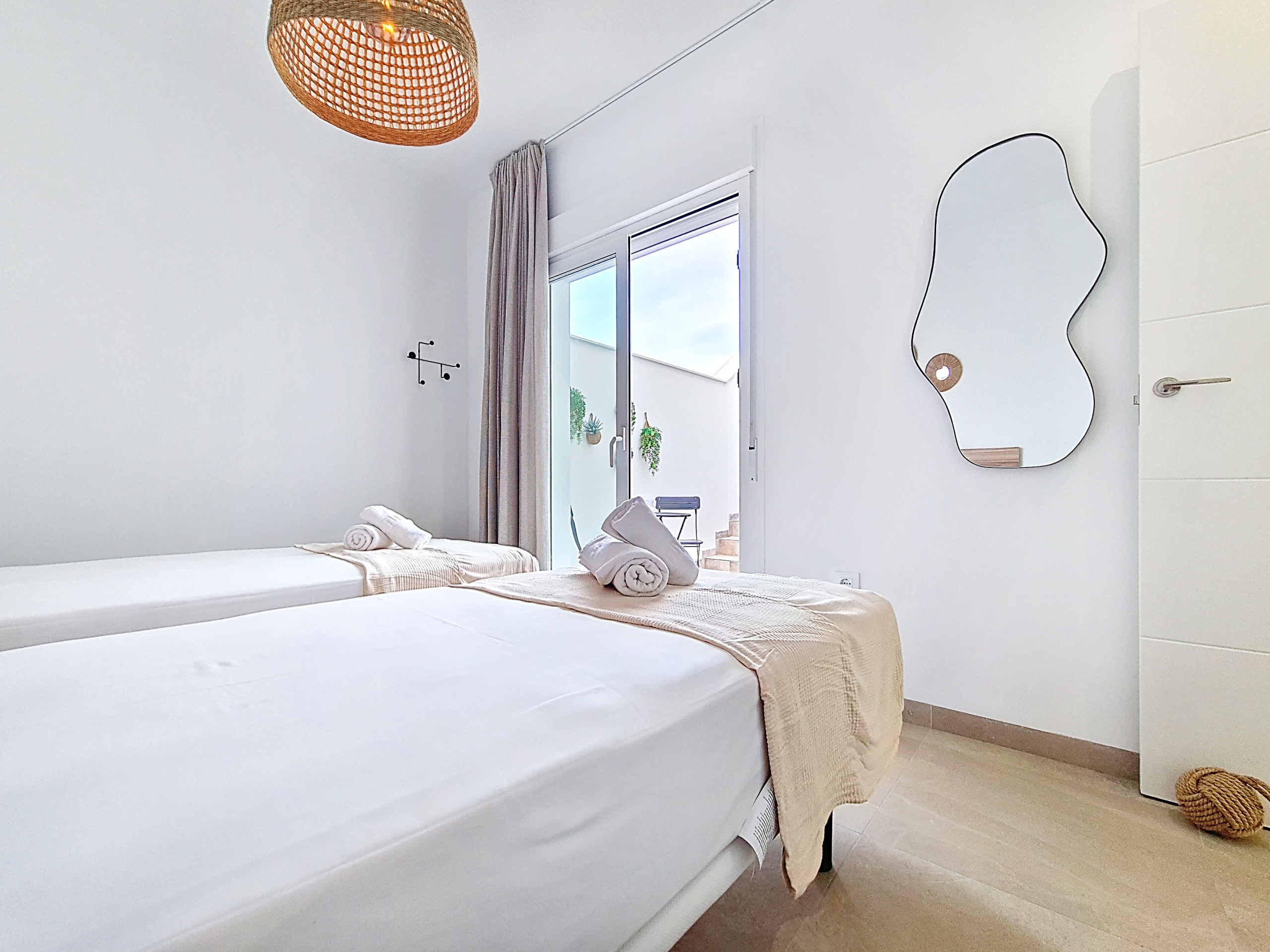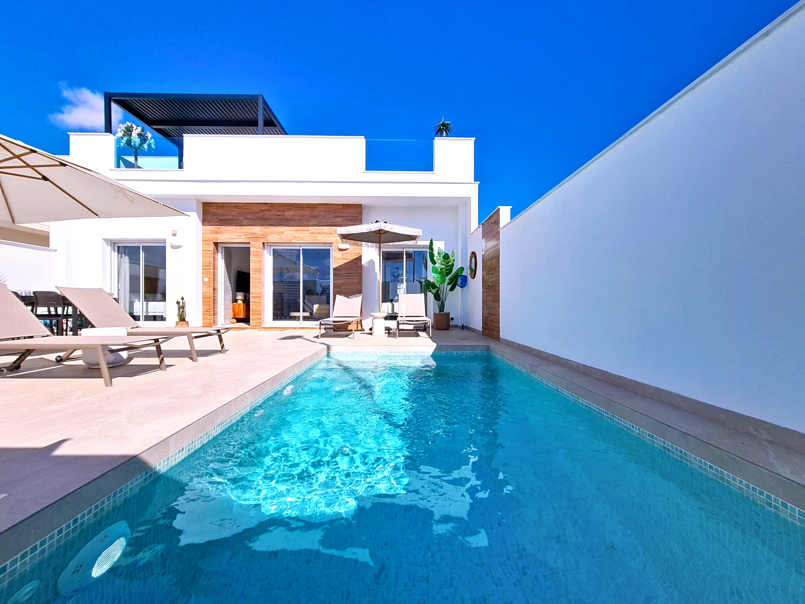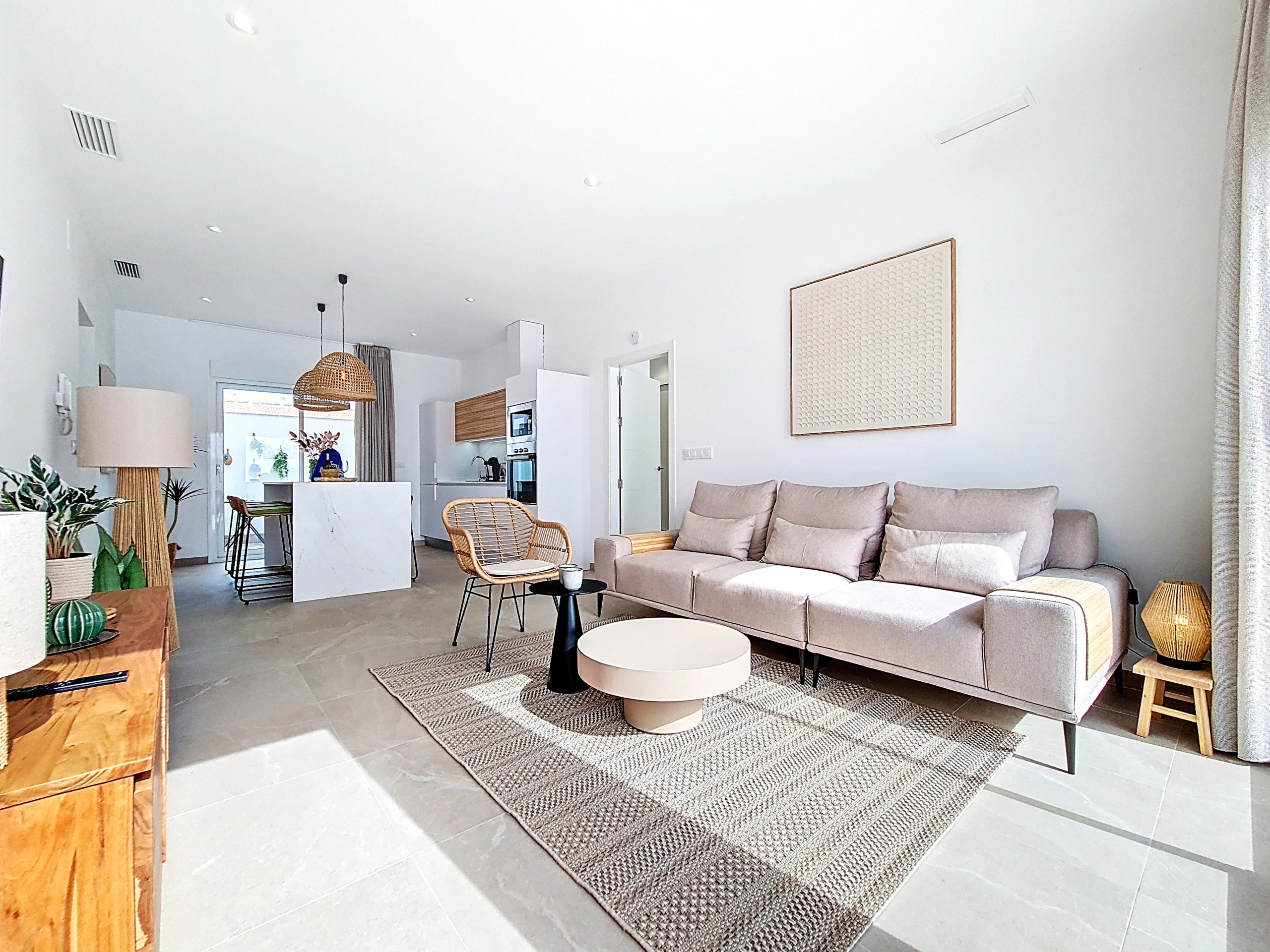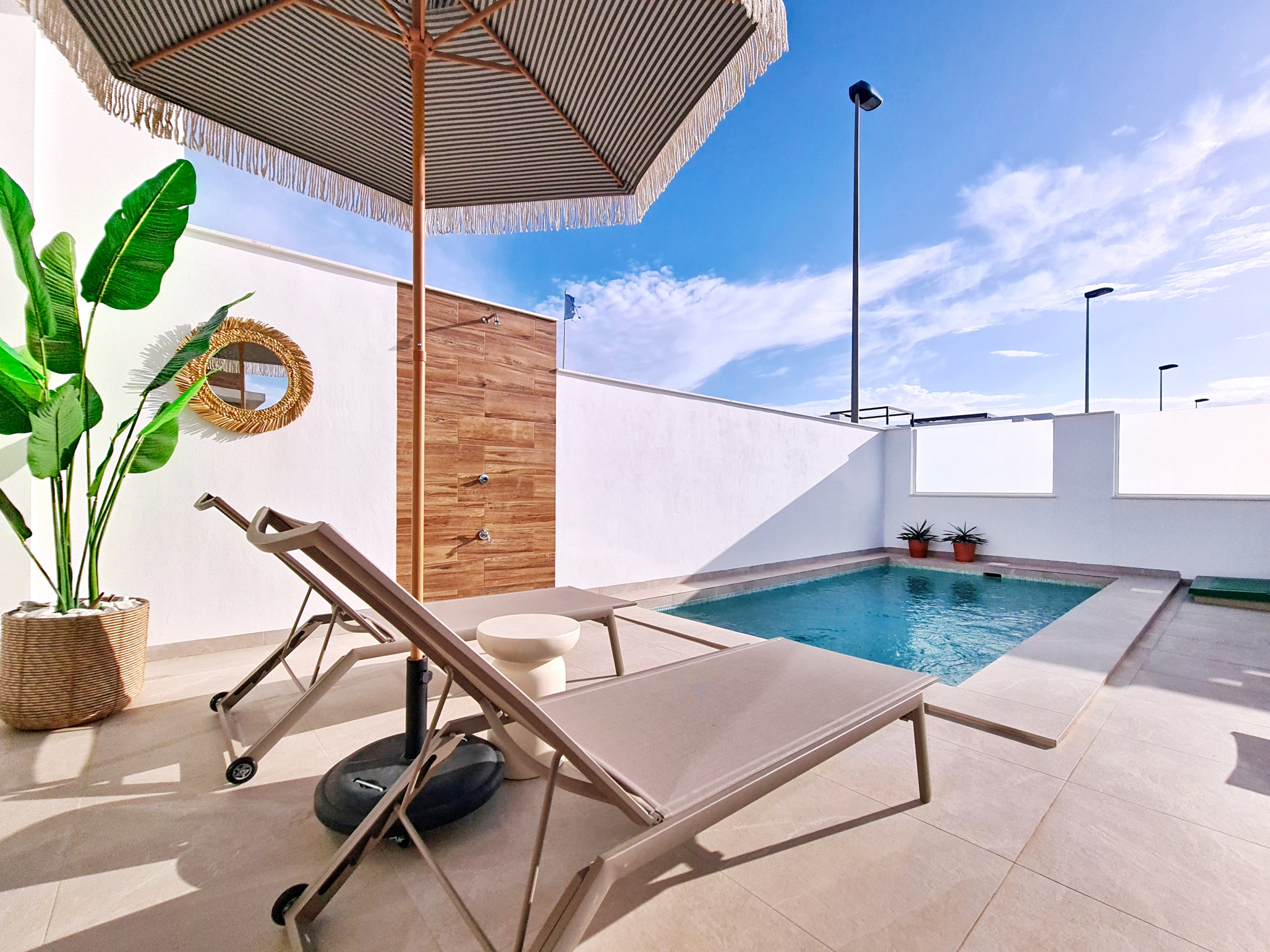 Esta villa de tres dormitorios en San Javier combina un diseño elegante con un ambiente cálido y acogedor, perfecto para familias, parejas o amigos que buscan una estancia relajante en un entorno agradable.