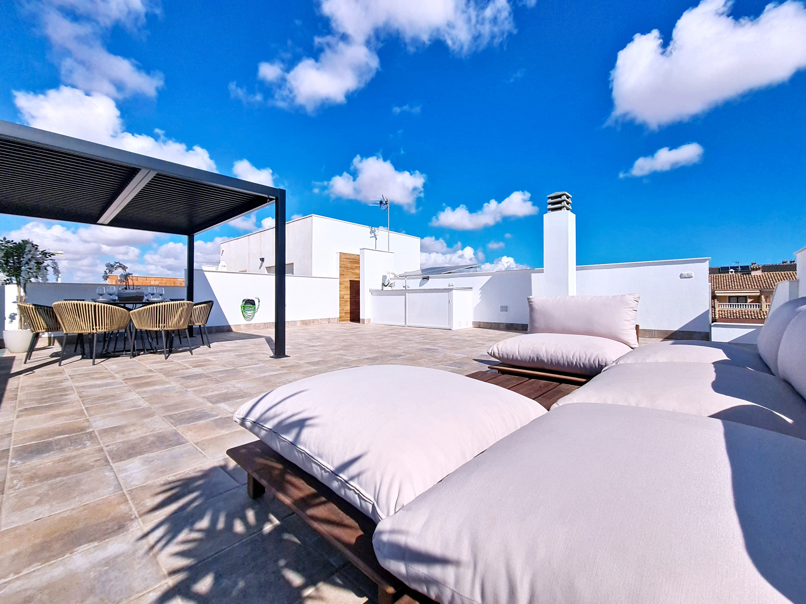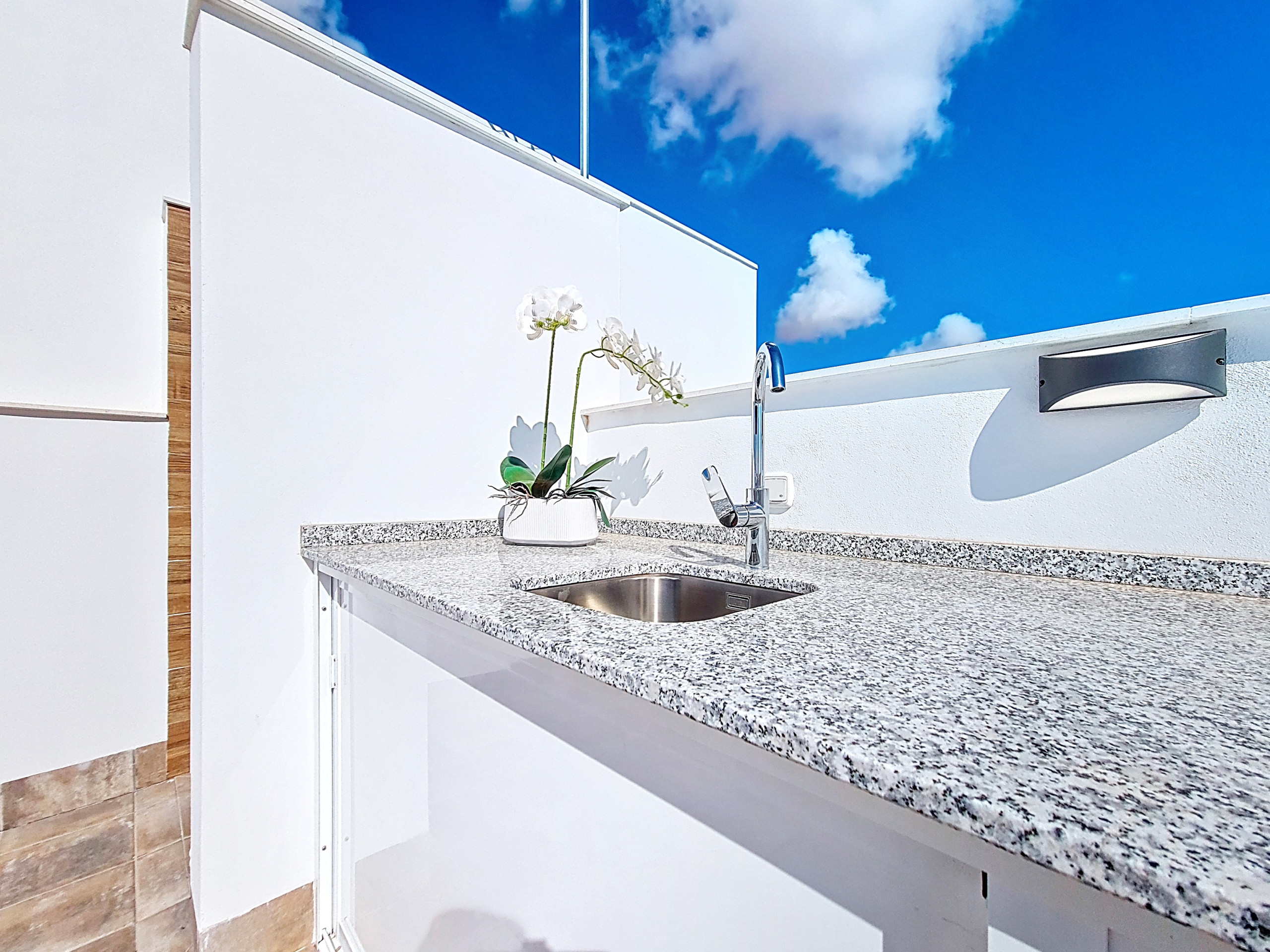 - Gran terraza en la azotea con zona de cocina, barbacoa y sombrilla