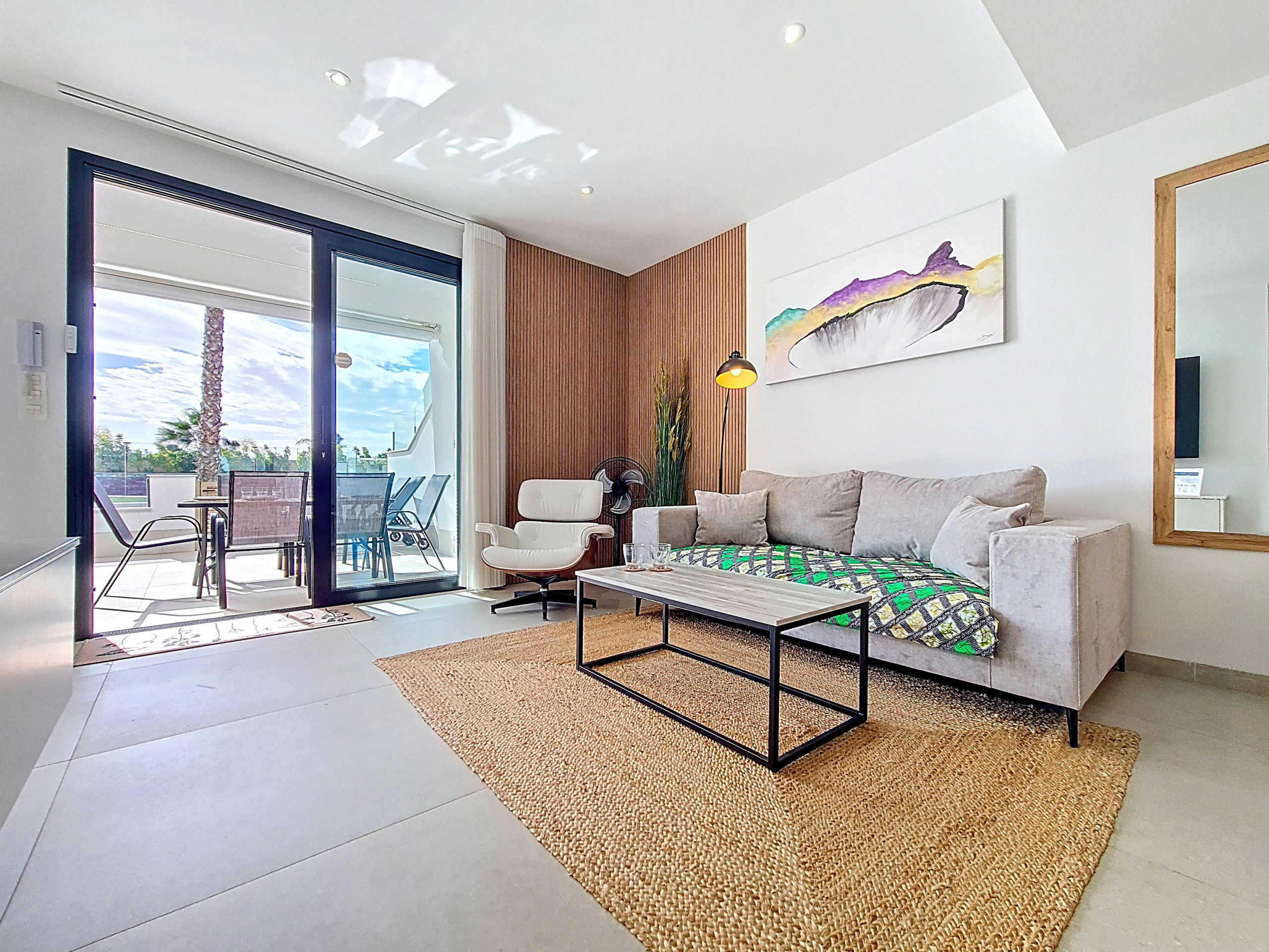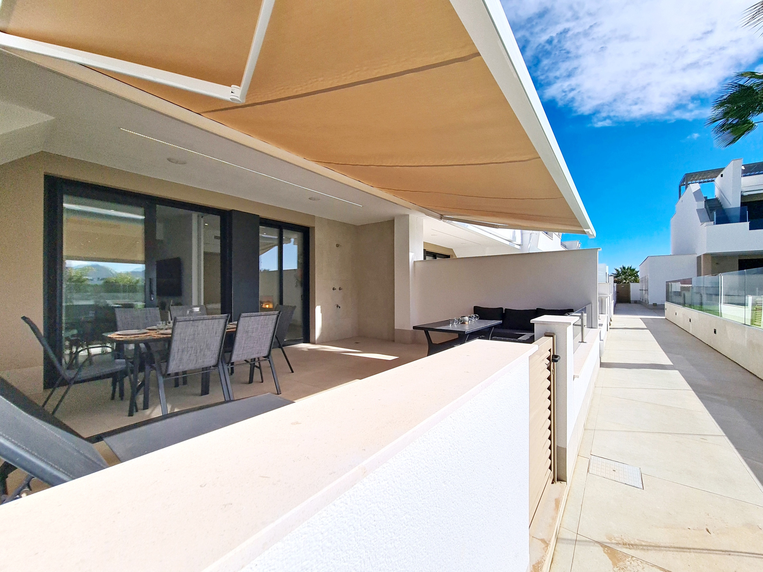 Cet élégant appartement de trois chambres au rez-de-chaussée, situé à La Llana Beach, Mar de Cristal, offre un intérieur moderne et meublé avec goût, idéal pour une escapade relaxante en bord de mer. Son agencement bien pensé allie confort contemporain et flexibilité.
