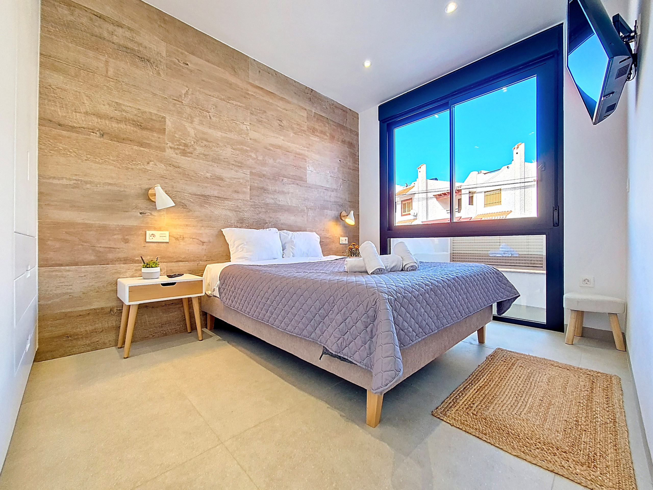 Cet appartement luxueux Arona offre à l’ensemble des invités le confort d’un foyer pour votre location de vacances, le logement comprend 2 chambres de larges dimensions, offrant des espaces de rangements, armoires. Il compte une salle de bain familiale située entre les chambres.