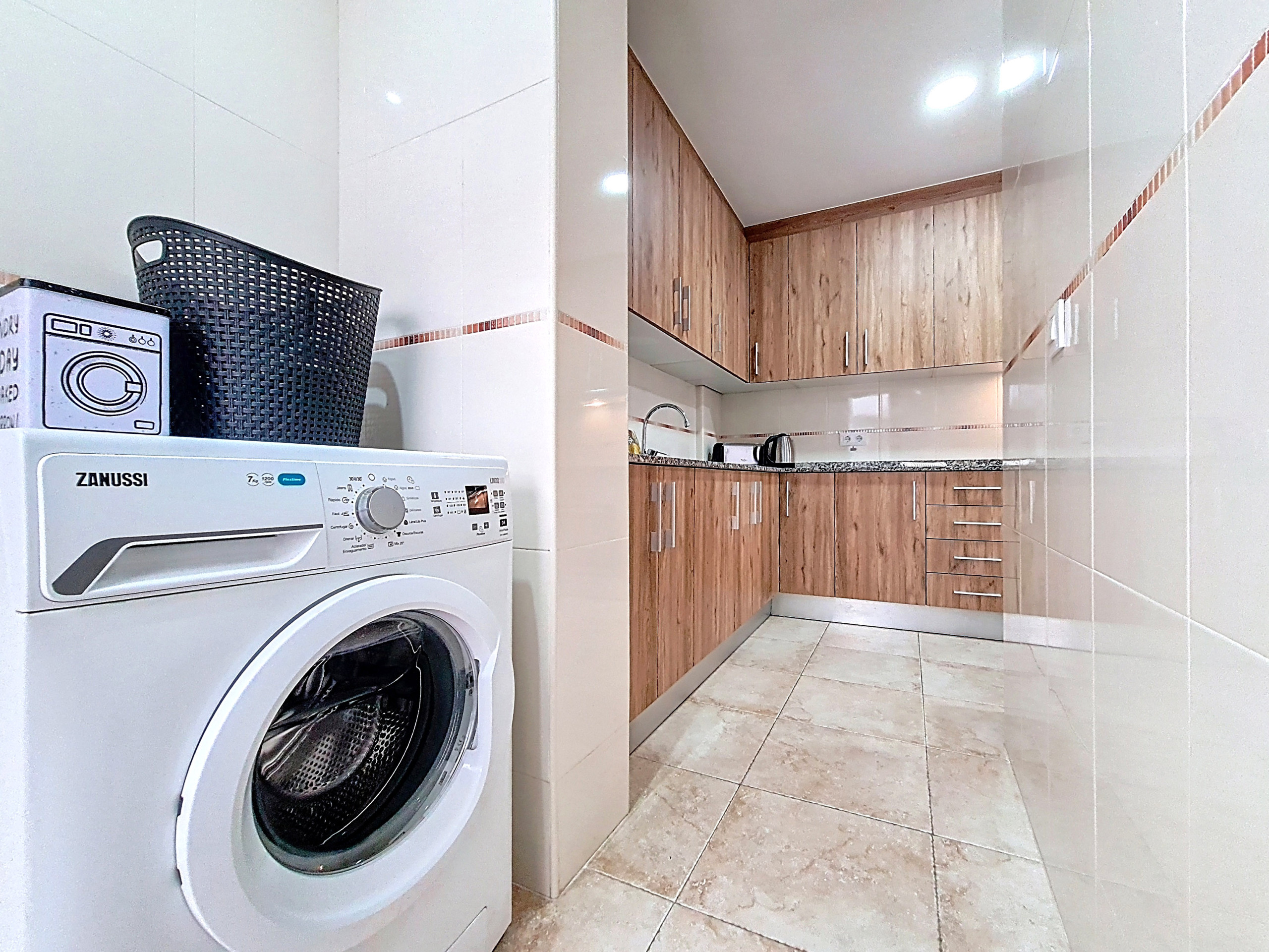 L'appartement dispose d'un espace de vie ouvert qui combine les espaces salon, salle à manger et cuisine en un seul environnement lumineux et aéré. La grande cuisine entièrement équipée est le rêve d'un chef, avec des plans de travail élégants, des appareils haut de gamme et un bar à petit-déjeuner qui est parfait pour des repas informels ou pour savourer une tasse de café le matin. La transition entre la cuisine et le reste de l'espace de vie crée une atmosphère accueillante, idéale pour se détendre après une journée de visites.