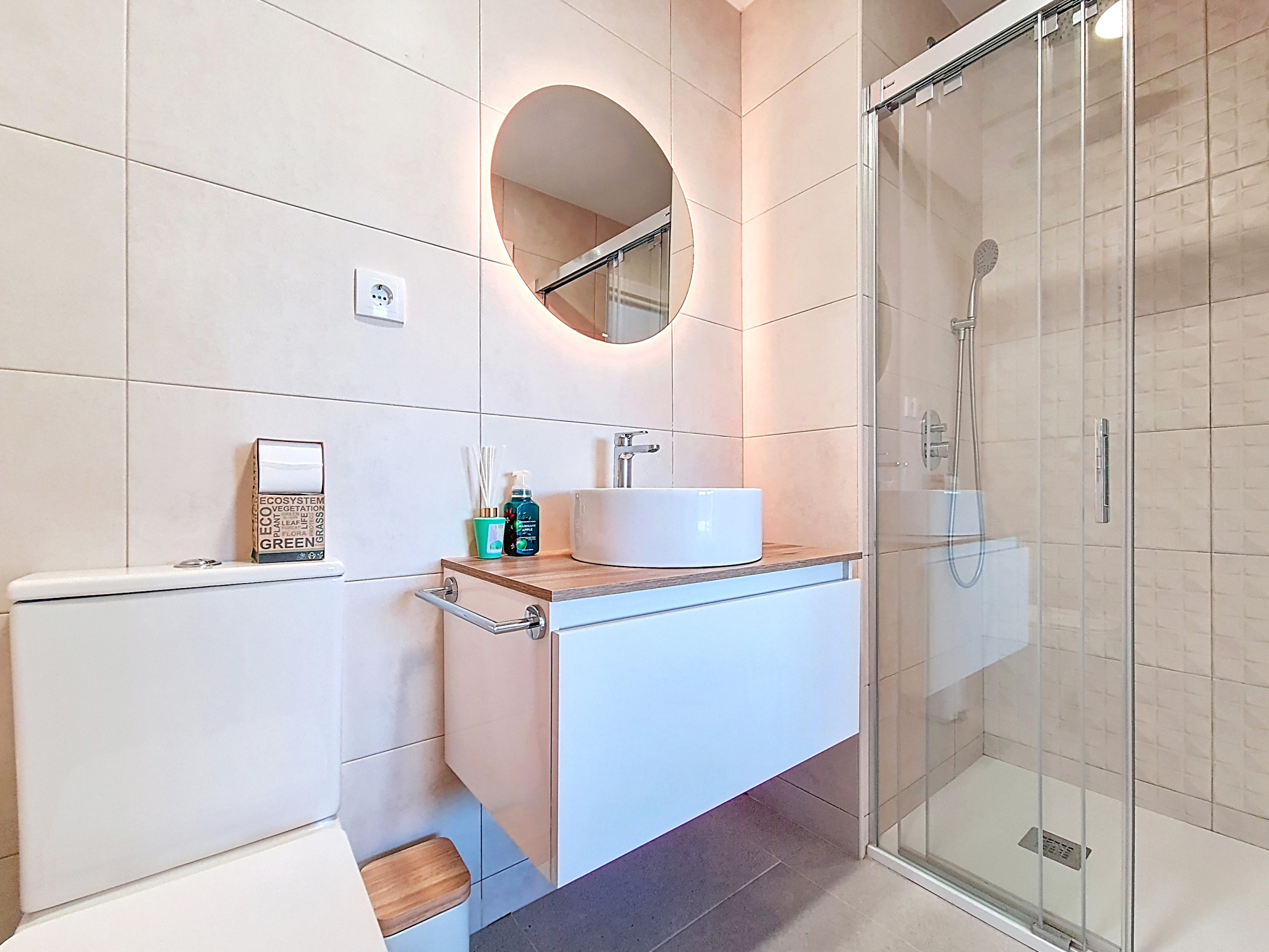 Les deux chambres sont décorées avec goût et disposent chacune d'une télévision. La chambre principale possède une salle de bains privative moderne avec douche à l'italienne, tandis que la seconde chambre, lumineuse et accueillante, est parfaite pour les enfants ou des invités supplémentaires. Une salle de bains séparée, également avec douche à l'italienne, est idéalement située entre les deux chambres. Des équipements modernes tels que la climatisation dans toutes les chambres, le Wi-Fi haut débit et une Smart TV vous garantissent confort, connectivité et divertissement tout au long de votre séjour.