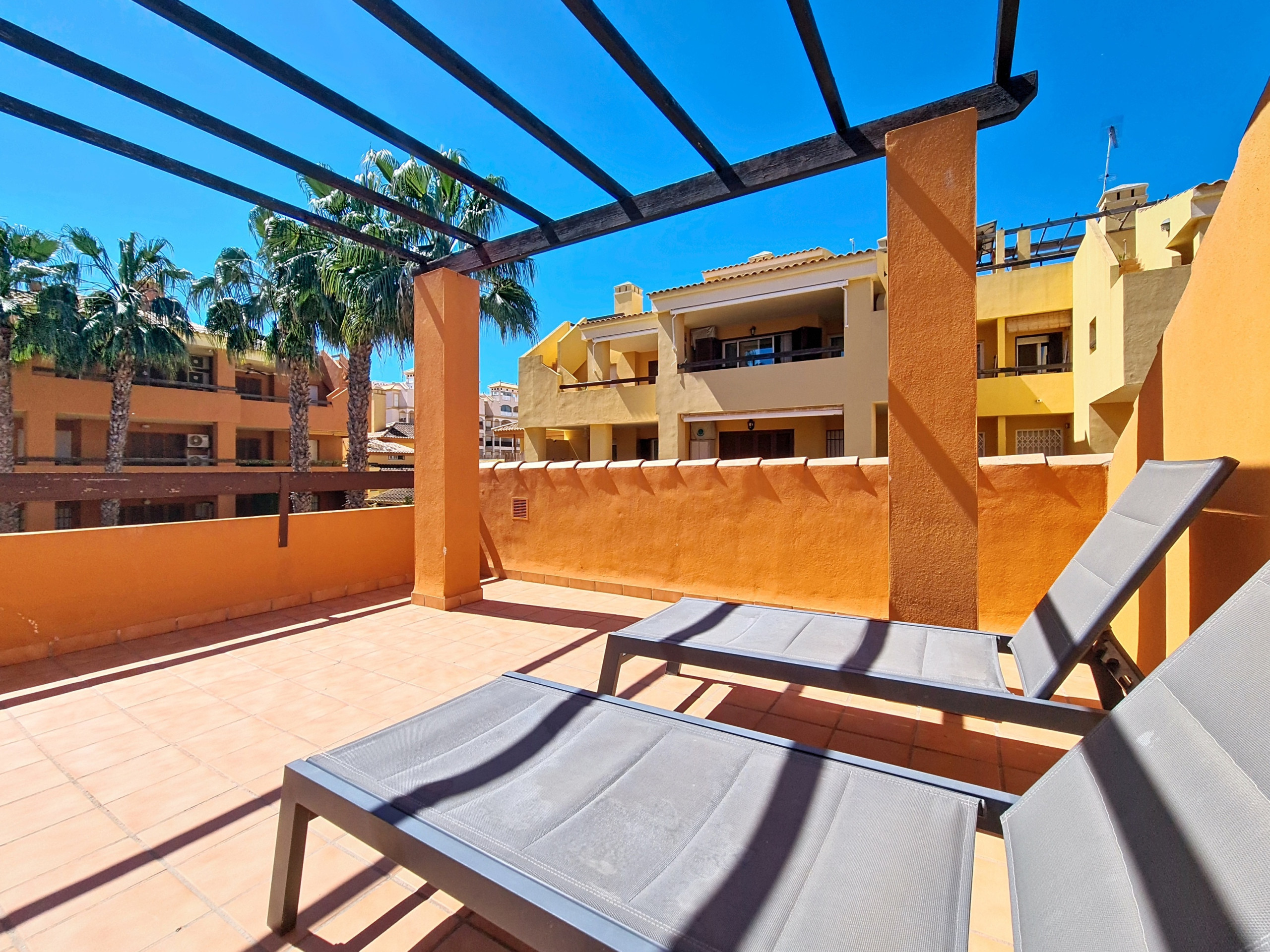 Ce charmant bungalow est situé sur le complexe très recherché Albatros 3, à quelques pas des plages de sable calmes du Mar Menor à Mar de Cristal. Le complexe est réputé pour ses jardins paysagers magnifiquement entretenus, centrés autour d'une zone de piscine commune attrayante qui crée un cadre paisible pour les familles et les couples.