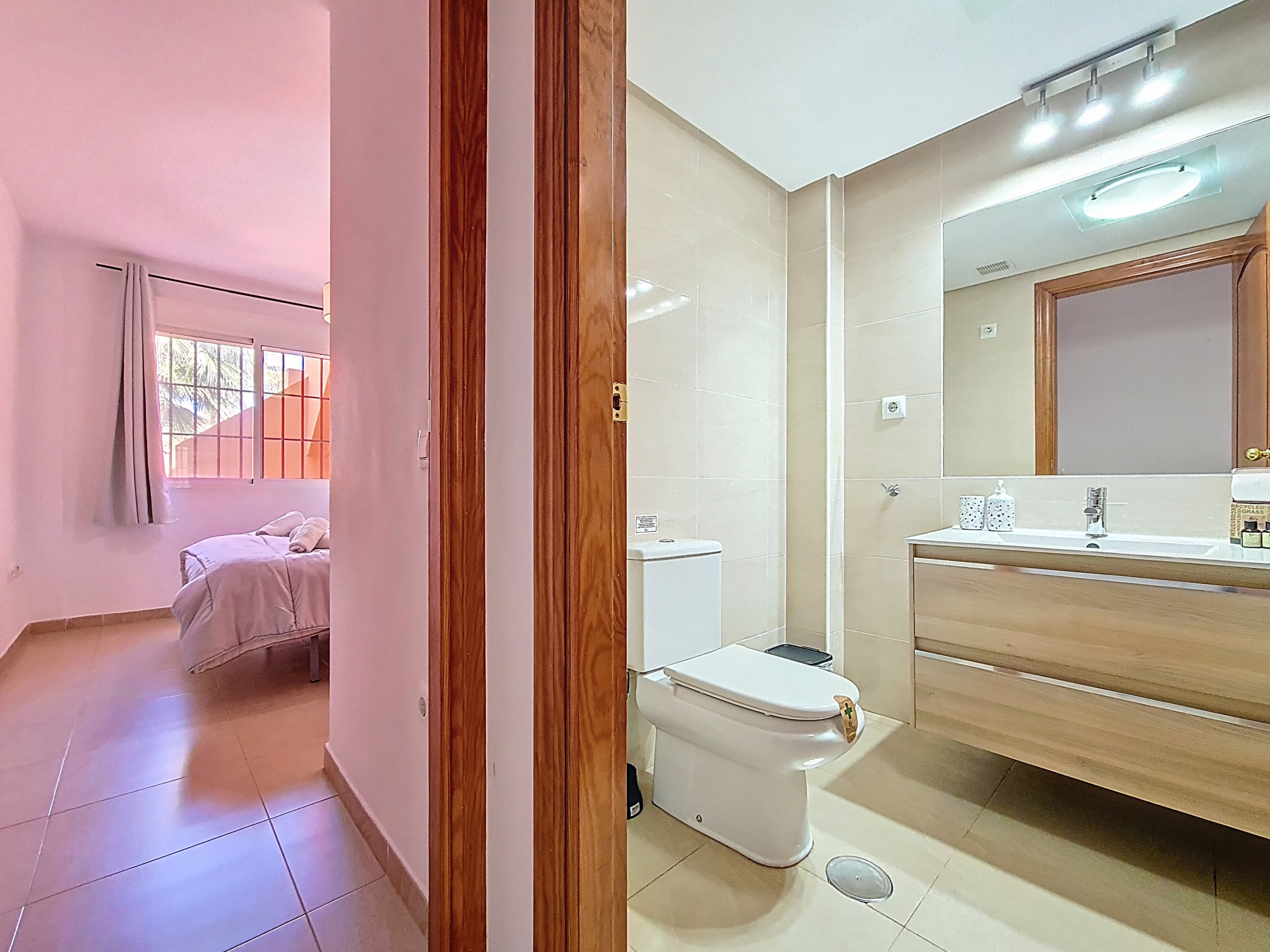 Elle possède 2 chambres à coucher de bonnes dimensions; les deux ont des lits jumeaux, une grande armoire et la climatisation. Entre les deux chambres, il y a une salle de bains familiale moderne avec une douche à l'italienne.