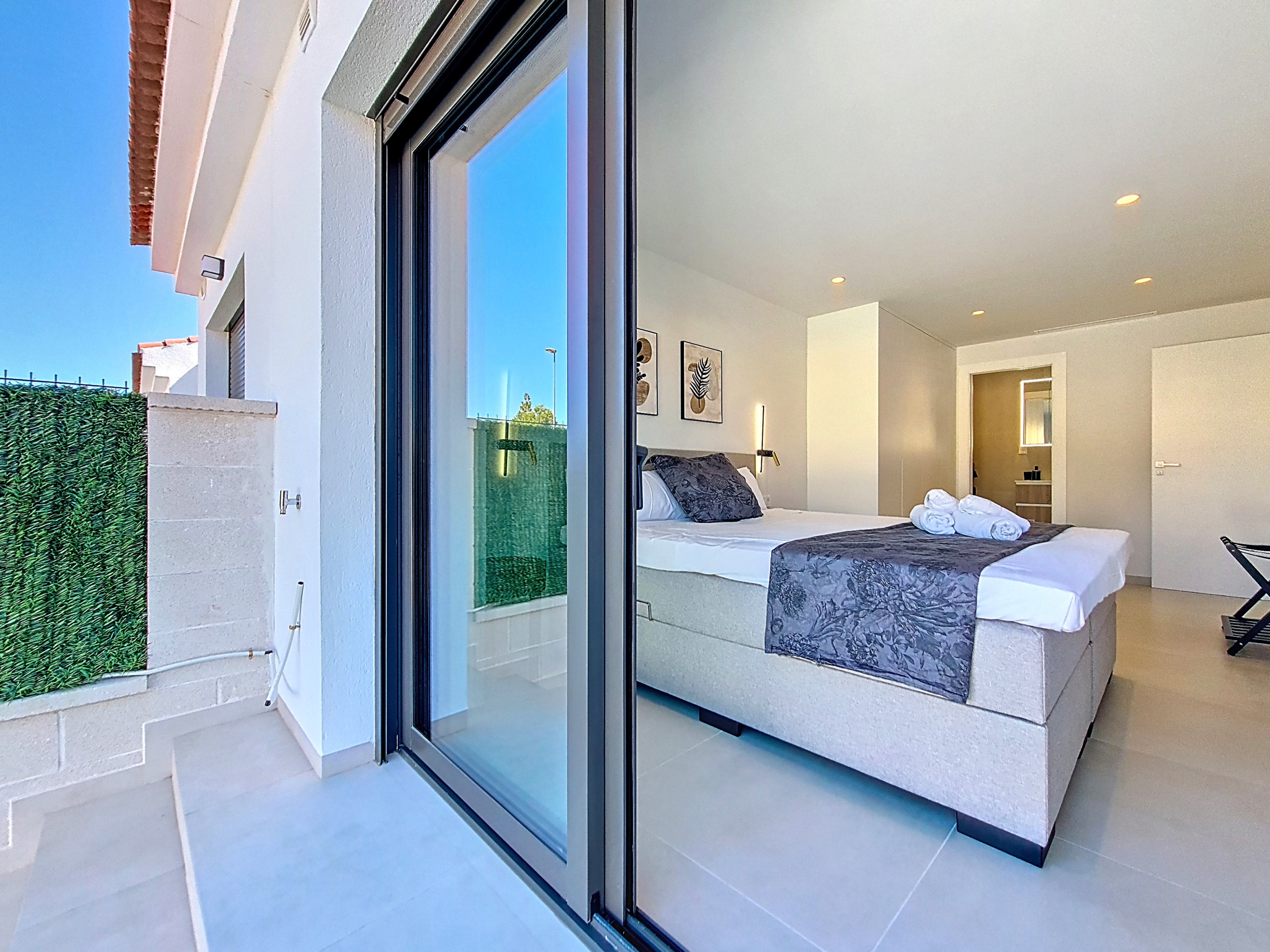 • 2 ruime slaapkamers met moderne badkamers (master en-suite + inloopdouche)