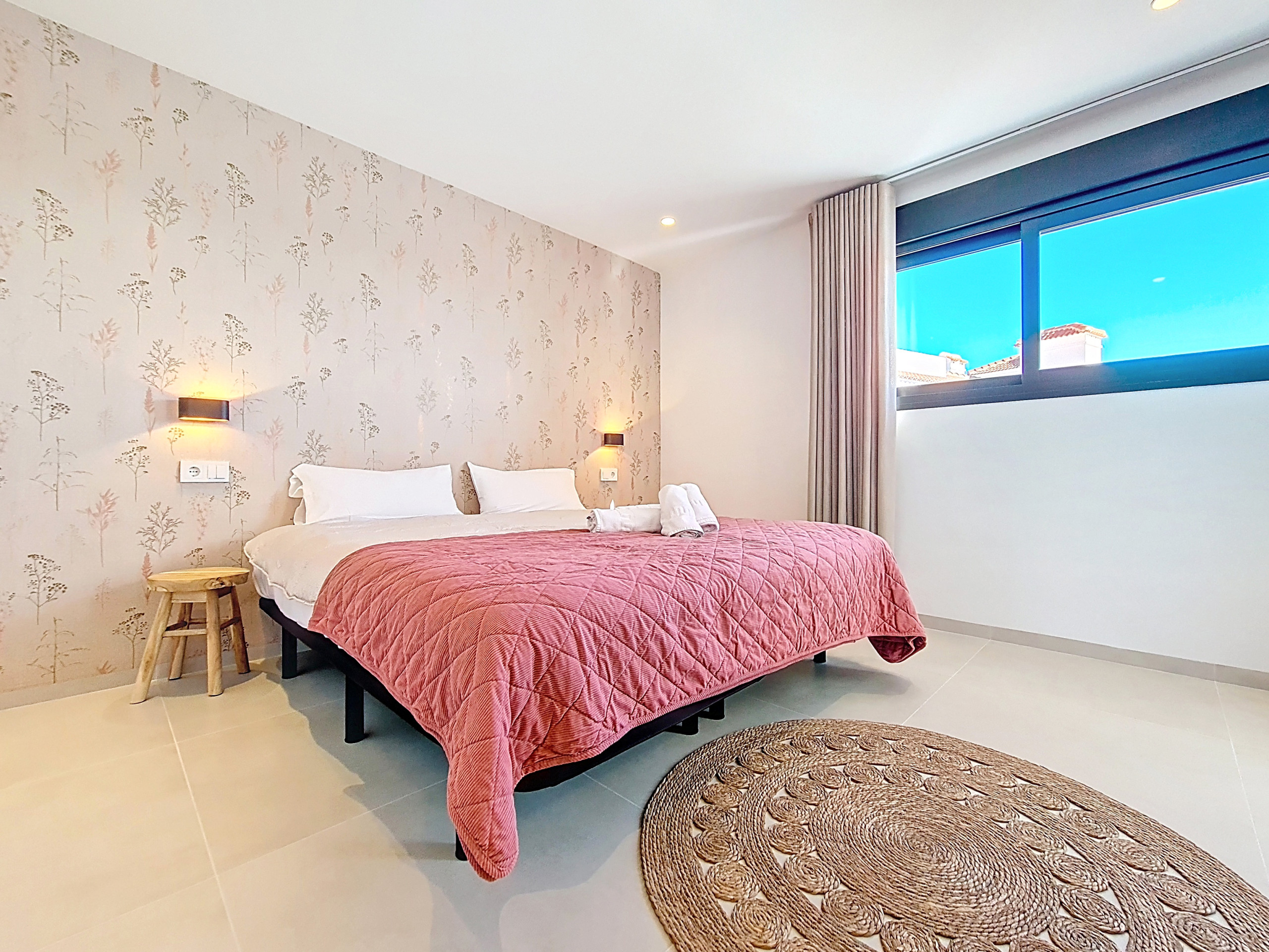 Het appartement beschikt over twee uitnodigende slaapkamers, elk ontworpen voor comfort en rust. De hoofdslaapkamer heeft een tweepersoonsbed en is smaakvol ingericht, en heeft ook een eigen kleine patio. De tweede slaapkamer heeft twee eenpersoonsbedden, waardoor het perfect is voor kinderen of vrienden. Beide kamers zijn gezellig en goed uitgerust, met fris linnengoed en voldoende opbergruimte om ervoor te zorgen dat u alles heeft wat u nodig hebt tijdens uw verblijf.