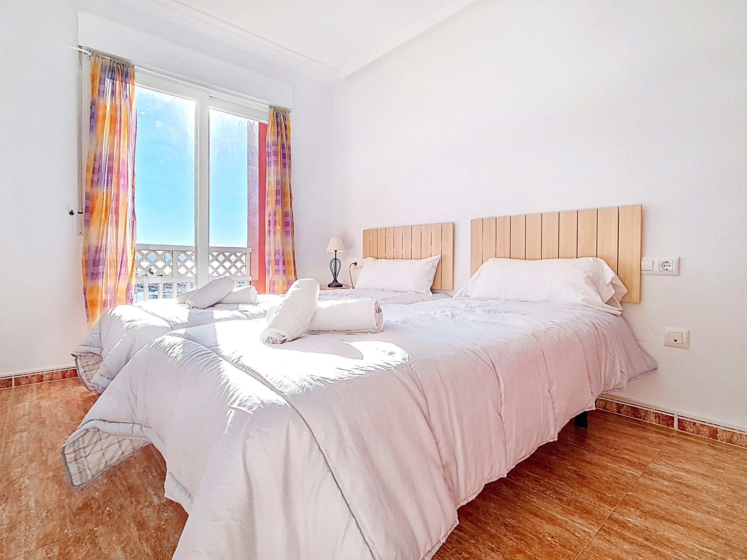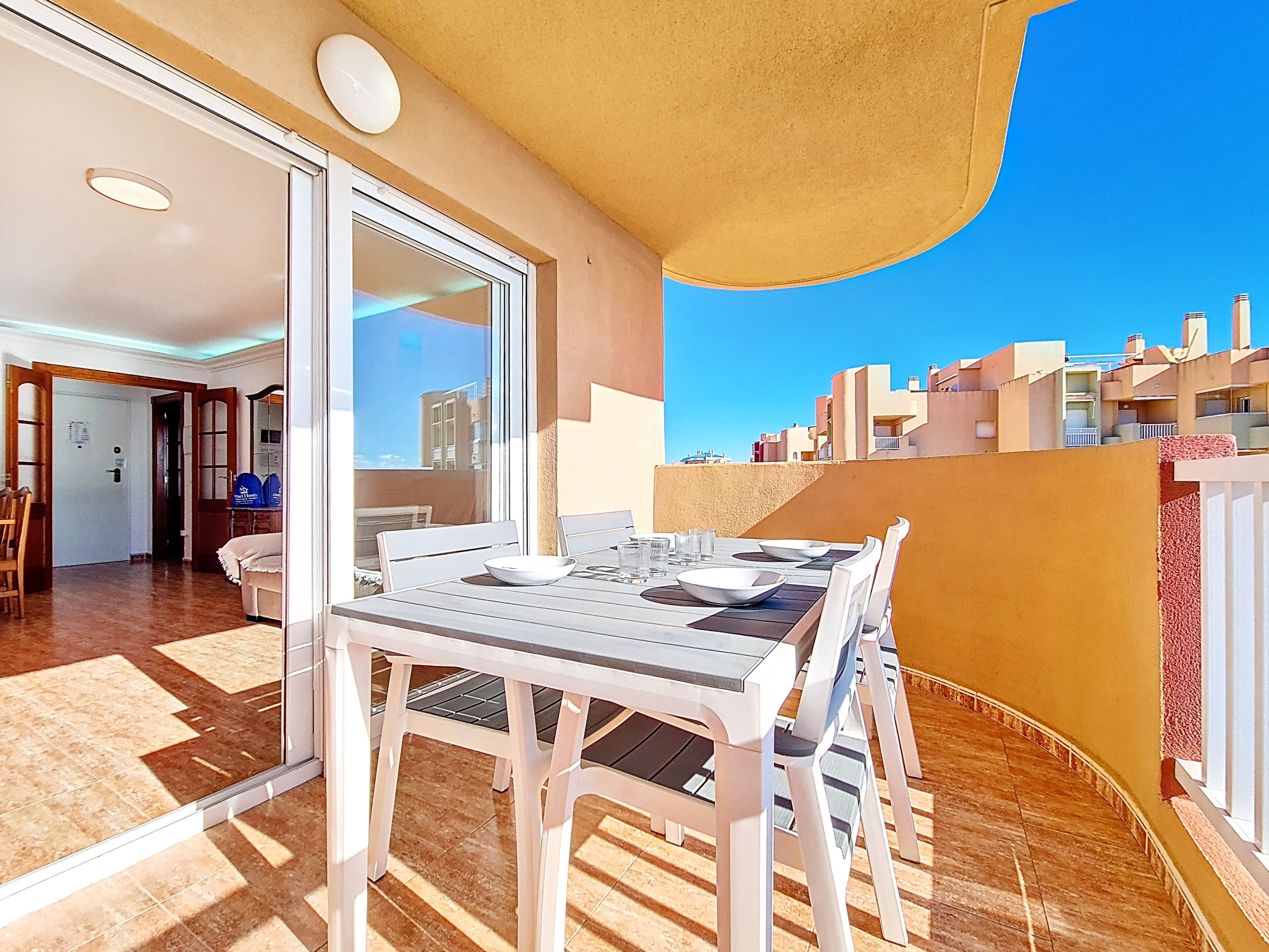 Dit familie appartement op de 1e verdieping is gelegen aan het strand aan het einde van La Manga, de appartementen hebben 2 ruime slaapkamers en 1 badkamer, de volledig uitgeruste keuken heeft alle moderne apparatuur die nodig is. Het balkon heeft een prachtig uitzicht op de Mar Menor en het strand, een plek om buiten het zonnebad te eten.