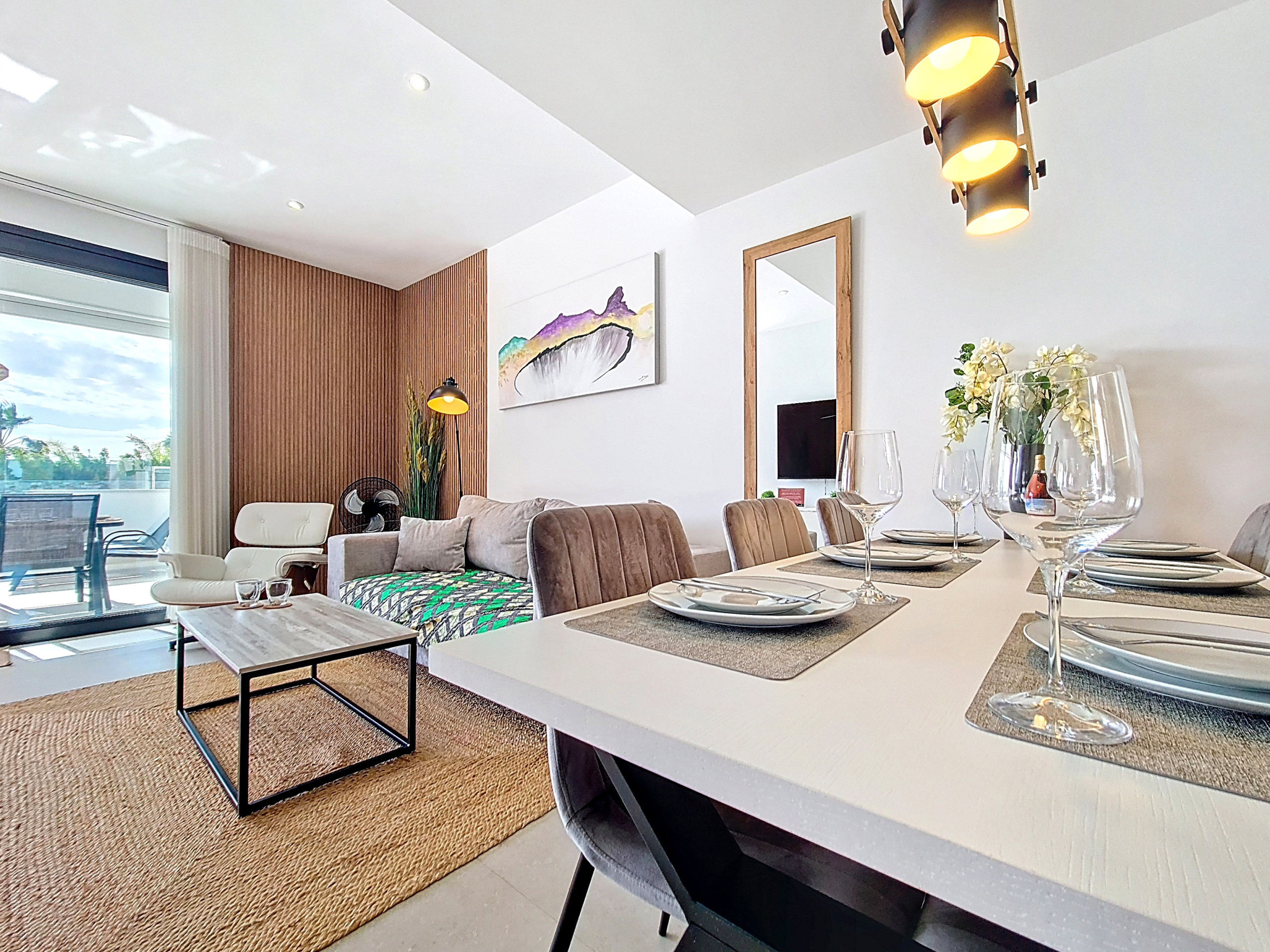 Dit elegante appartement met drie slaapkamers op de begane grond in La Llana Beach, Mar de Cristal, biedt een modern en smaakvol ingericht interieur, ideaal voor een ontspannen verblijf aan de kust. Dankzij het doordachte ontwerp combineert het appartement eigentijds wonen met een flexibele indeling.