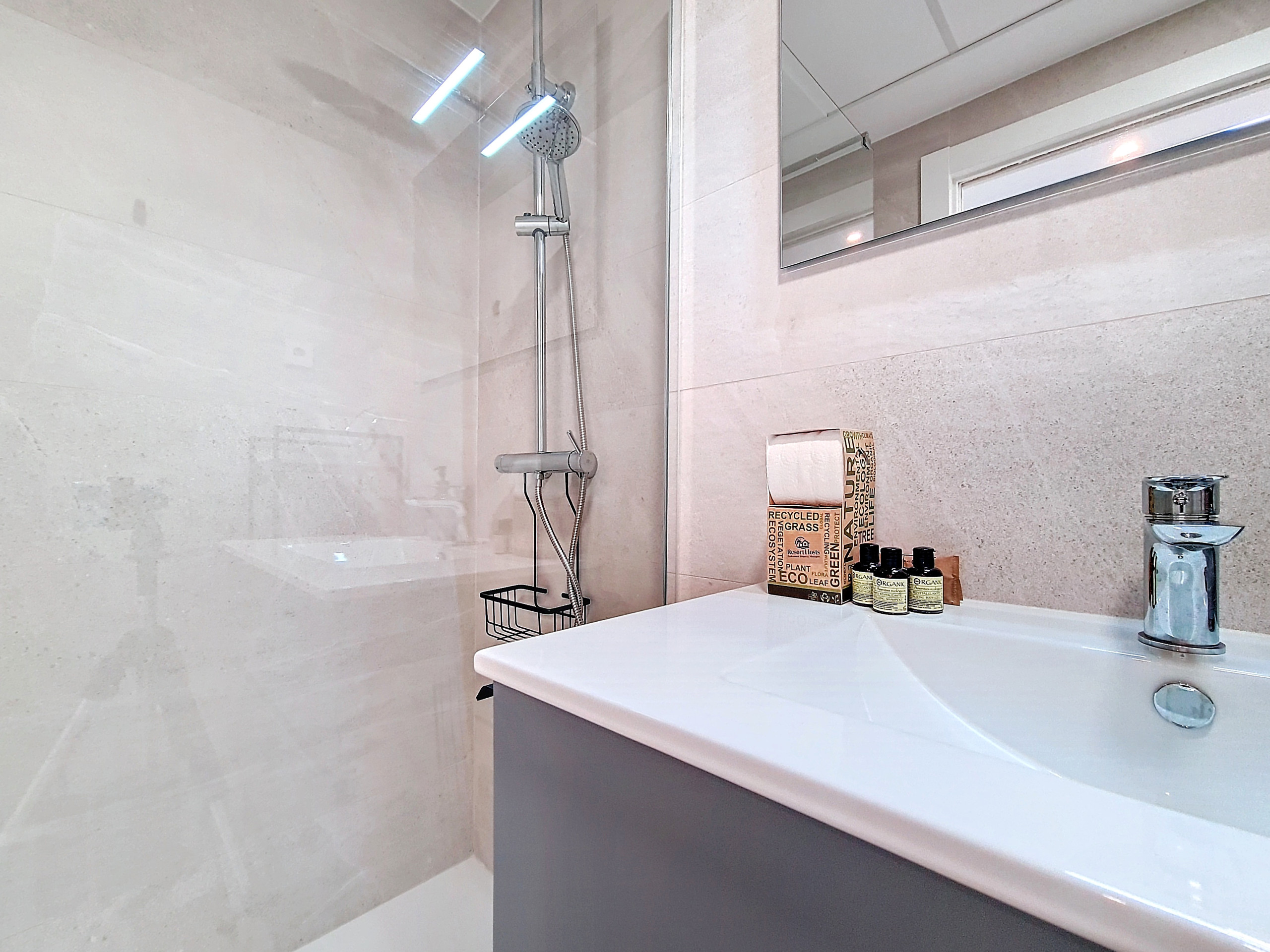 O apartamento tem dois quartos bem equipados, cada um com muito espaço no roupeiro e roupa de cama confortável para garantir uma noite de sono tranquila. Ambas as casas de banho são modernas e elegantes, com um duche amplo que dão um toque luxuoso ao seu dia a dia. O quarto principal tem uma casa de banho privativa, enquanto o segundo quarto está convenientemente localizado junto à casa de banho principal, proporcionando privacidade a todos os hóspedes.