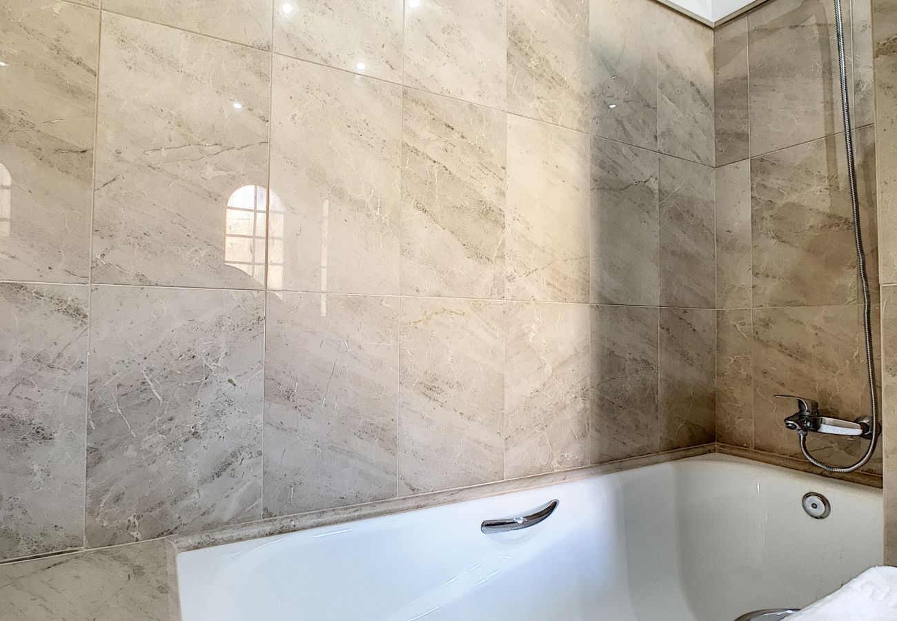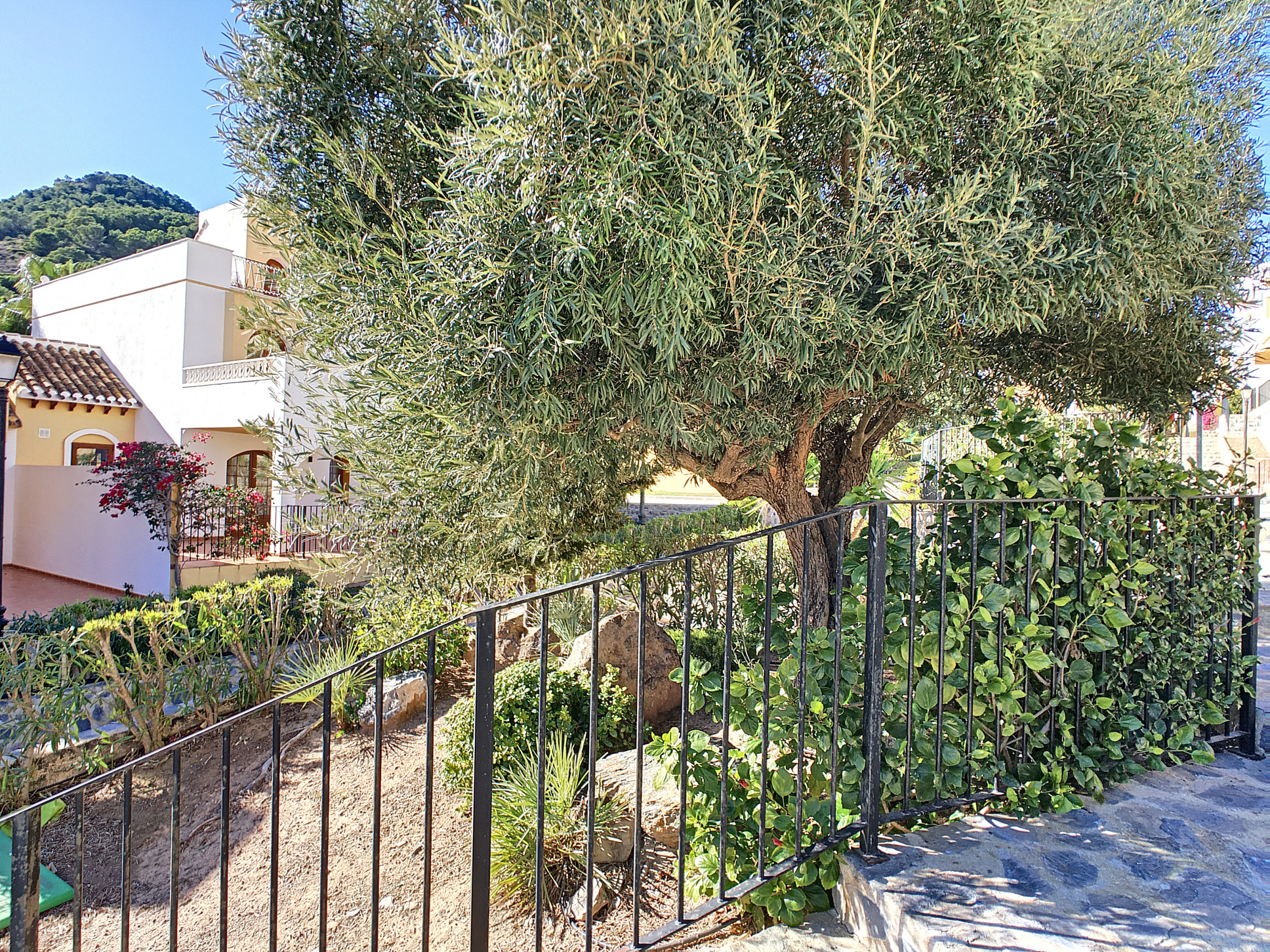 A área comum tem uma piscina de bom tamanho com uma parte rasa com degraus e está rodeada pelos jardins bem cuidados de Las Atalayas.