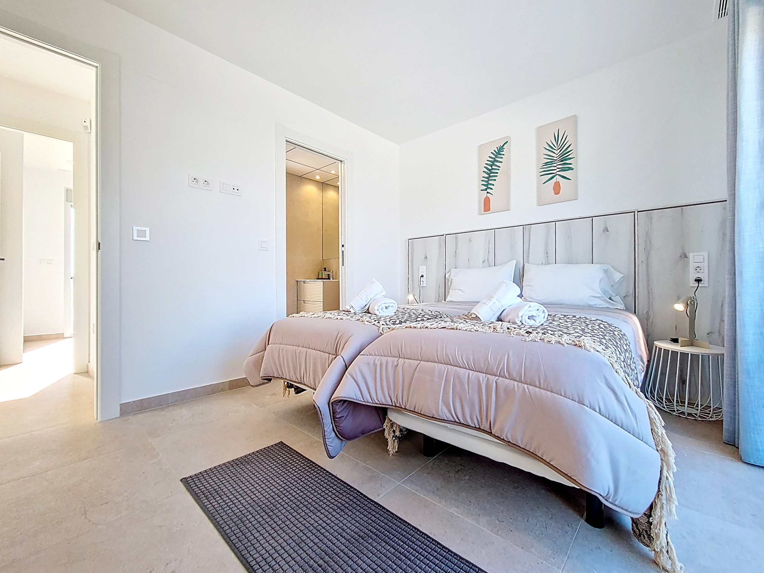 A villa tem 3 quartos cuidadosamente projetados. No rés-do-chão, o quarto tem acesso direto a uma casa de banho, que também possui uma entrada separada do corredor. Esta disposição inteligente permite que a casa de banho sirva tanto como um quarto de banho privativo como a casa de banho principal do rés-do-chão da villa.