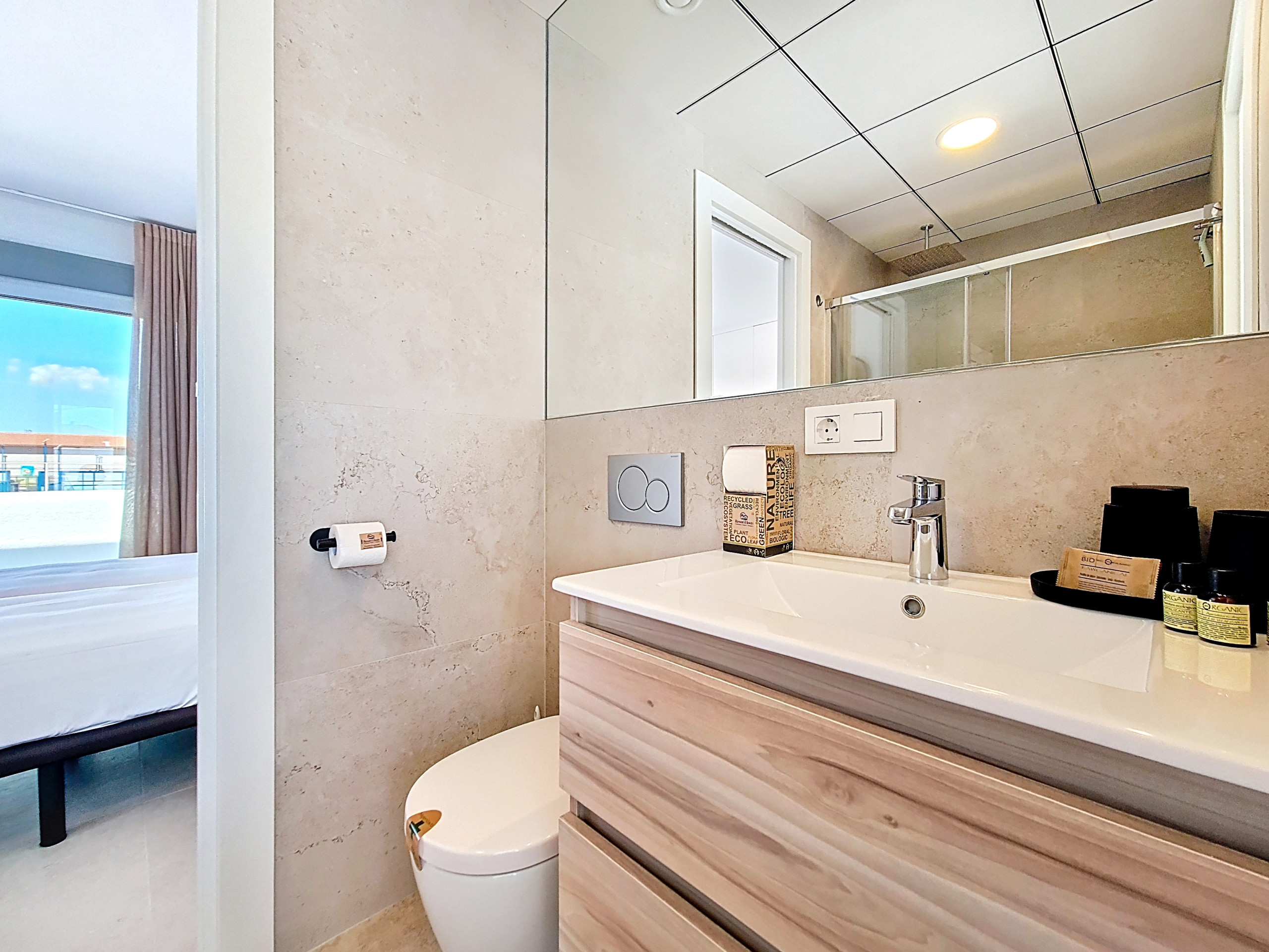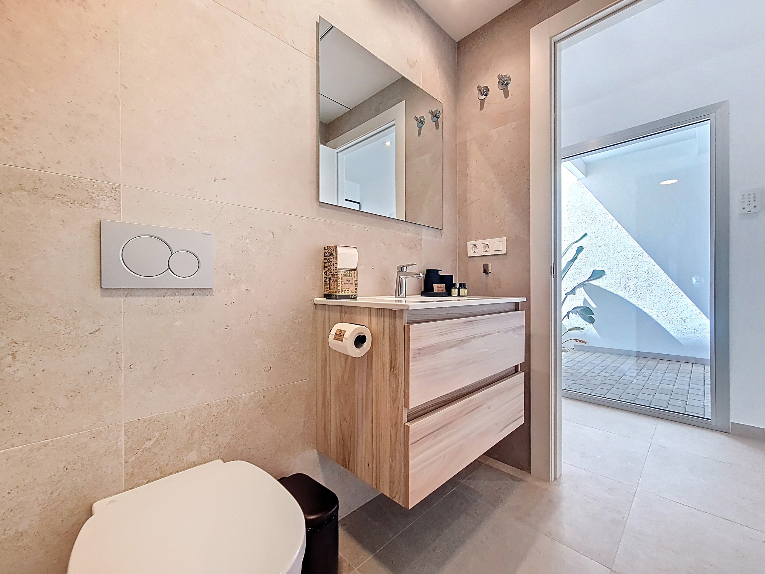 Os três quartos da villa foram cuidadosamente concebidos. O quarto principal, no piso térreo, tem acesso direto à casa de banho, também com entrada independente pelo corredor. Graças ao layout cuidadoso, a casa de banho pode ser utilizada como suite ou como casa de banho principal no piso térreo.