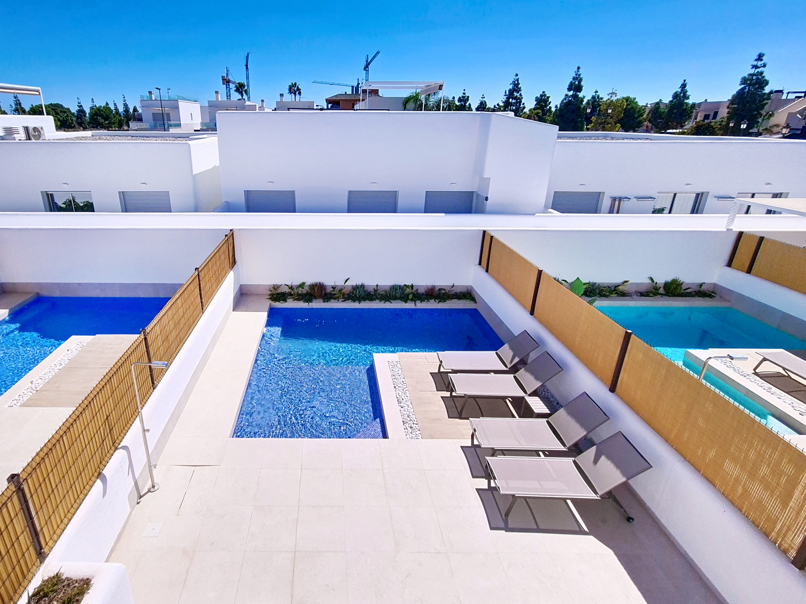Esta villa está localizada em uma área popular de Los Alcazares e fica a uma curta caminhada da praia, bares, restaurantes e lojas. A propriedade tem uma cozinha em plano aberto, 3 quartos e 2 casas de banho. A propriedade possui amplas áreas externas com área de jantar que dá para a piscina, um terraço do quarto principal e um terraço na cobertura com sofás chill out com pérgula. Dentro da vila, você tem um lounge com uma grande TV com canais de todo o mundo. Internet Wi-Fi é fornecida gratuitamente. Existe uma cozinha de bom tamanho com zona de refeições juntamente com lugar de estacionamento privado na garagem subterrânea.