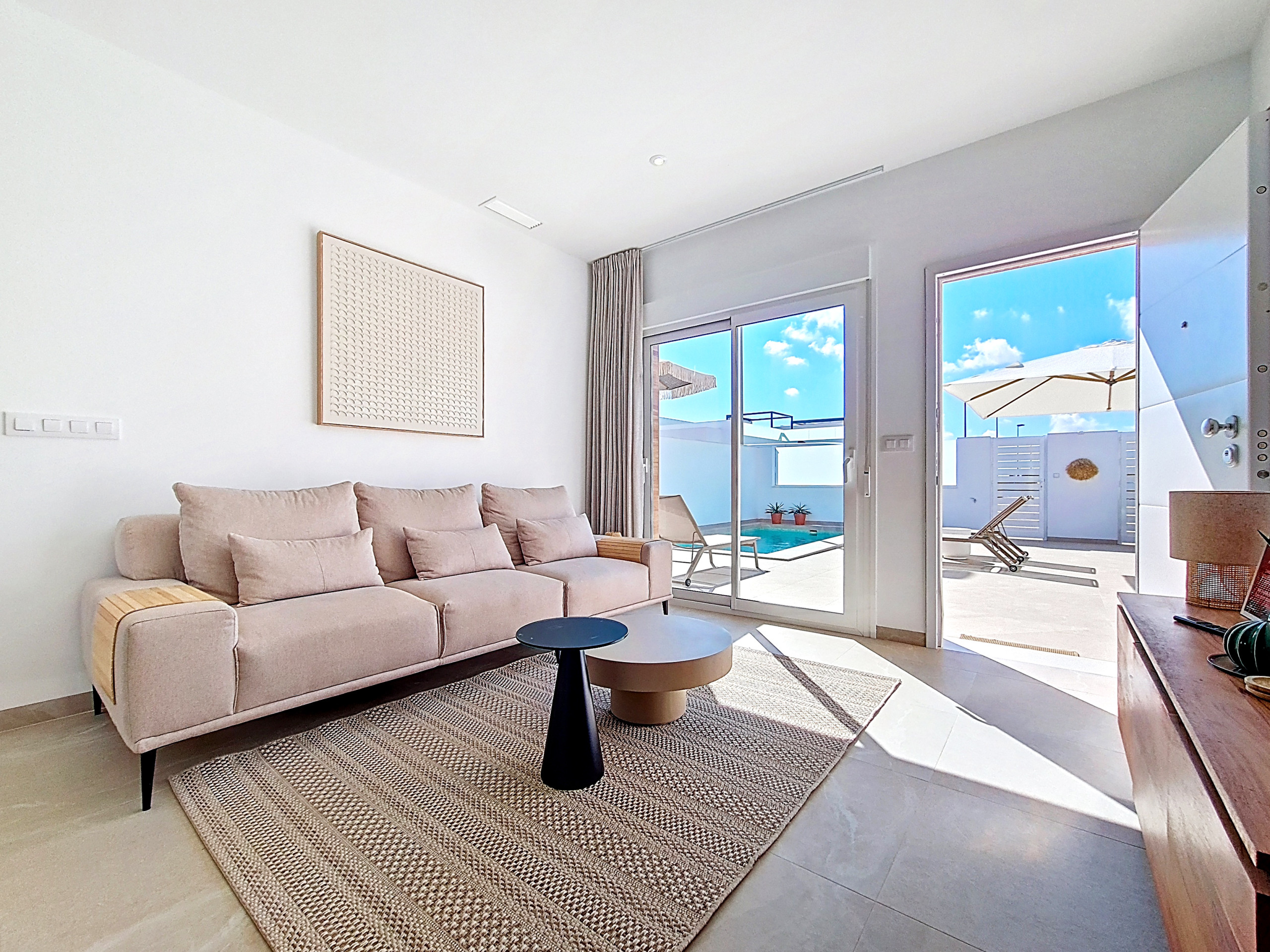 Esta bela moradia com três quartos em San Javier combina um design elegante com um ambiente acolhedor, perfeita para famílias, casais ou amigos que procuram umas férias relaxantes num espaço de qualidade.