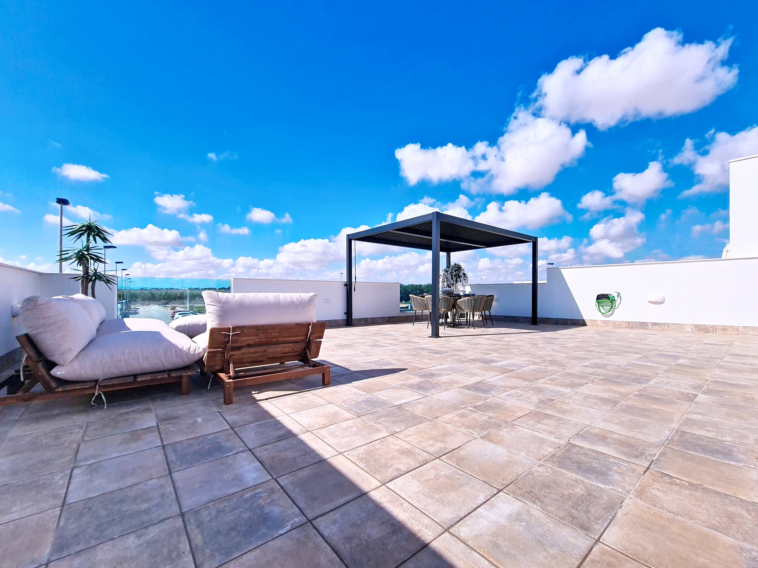 Uma das características mais impressionantes da vila é o seu amplo terraço privado no último piso, cuidadosamente concebido para relaxamento e entretenimento. Este belo espaço é perfeito para aproveitar o sol ou relaxar com todo o conforto. No seu centro encontra-se um espaçoso e luxuoso jacuzzi, oferecendo o local perfeito para relaxar enquanto desfruta da atmosfera serena. O terraço conta ainda com uma cozinha exterior ampla e elegante, habilmente escondida atrás de estores elétricos, proporcionando tudo o que é necessário para uma experiência gastronómica ao ar livre sem esforço. Com uma churrasqueira, uma área de estar acolhedora e espreguiçadeiras, este retiro no último piso é o melhor lugar para abraçar o estilo de vida mediterrânico - quer esteja a desfrutar do calor do dia ou a relaxar sob as estrelas.