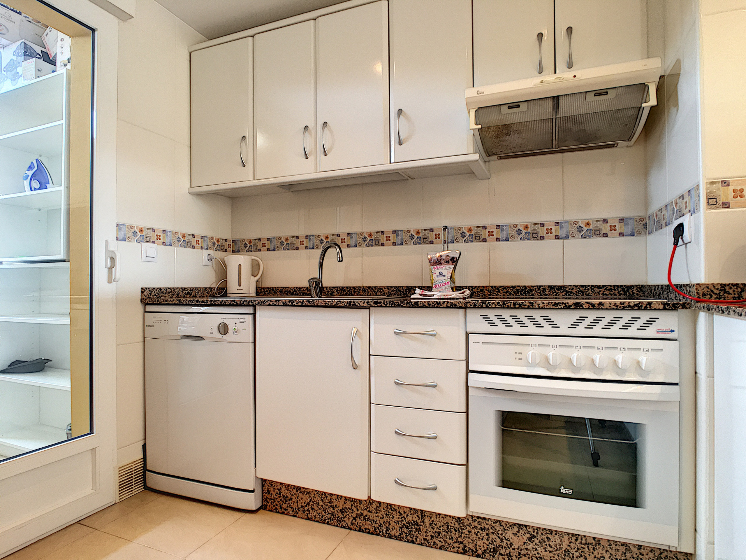 This modern penthouse apartment is located in the Ribera Beach complex in Mar de Cristal. The apartment consists of 2 bedrooms, bathroom, fully equipped kitchen, lounge/diner and nice size balcony. From the balcony there are steps to a large private roof solarium which is a great area to relaxing, read or eat. The apartment also has English and Spanish TV channels and Wifi internet is free to use. The complex has a nice communal pool area in the centre and it is approximately 5 minutes walking distance from the beach.