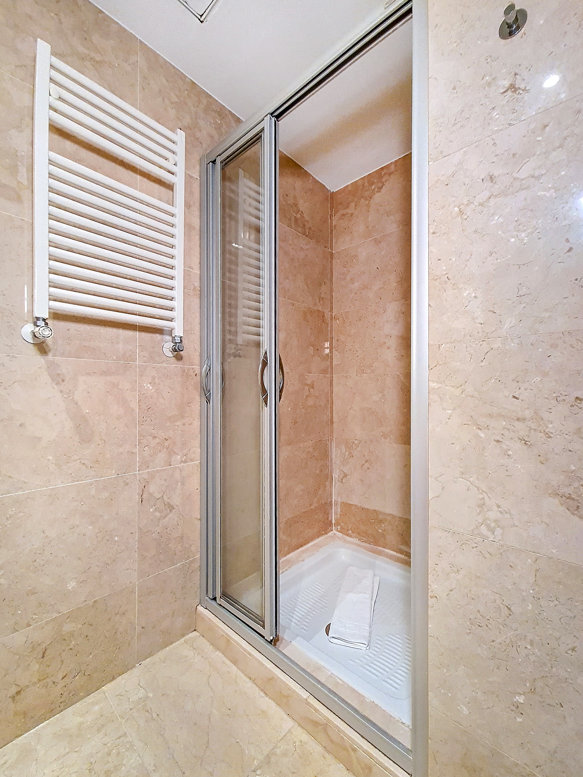 The kitchen is separated from the living space, yet open enough to maintain an inclusive flow to the rest of the apartment. It is fully equipped with modern appliances, including a fridge, oven, microwave, and dishwasher, as well as a full range of cooking utensils. Whether you're preparing a quick breakfast or a gourmet meal, you'll find everything you need to make your stay as comfortable as possible.