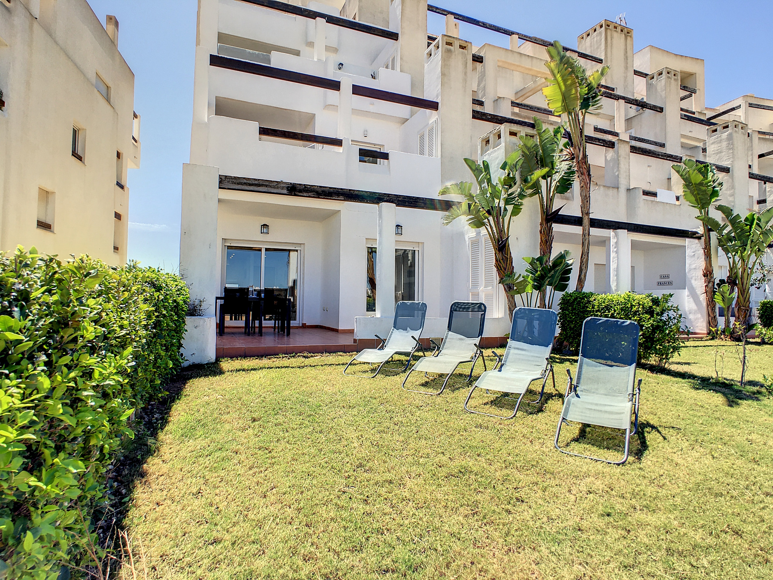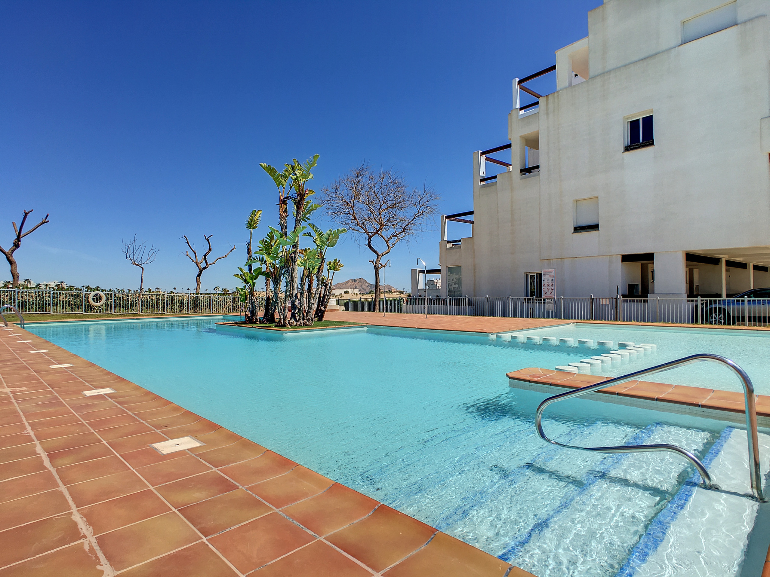 This first floor apartment is located on Las Terrazas de la Torre golf resort, once part of the Polaris World developments. Just 15 minutes by car to the beach and 20 minutes to the city of Murcia.
