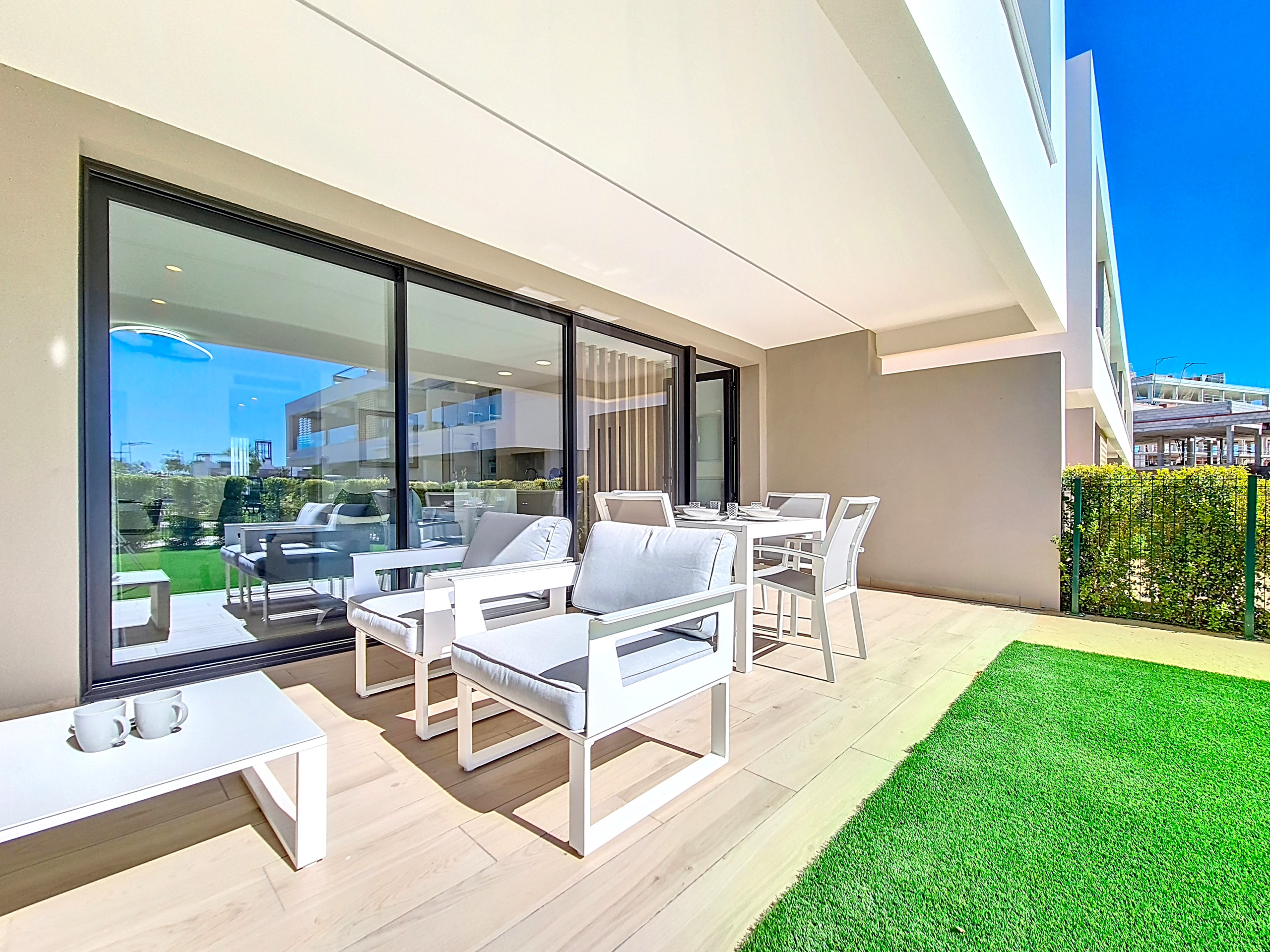 This stylish apartment offers modern comforts like air-conditioning throughout a Smart TV and high-speed Wi-Fi, keeping you cool and connected during your stay. From this apartment, you have access to a beautifully maintained communal pool area, complete with a jacuzzi and a dedicated kids' pool . There is also a small outdoor gym and children’s play area. It's the perfect spot to take a refreshing dip or relax under the warm Mediterranean sun with family and friends.