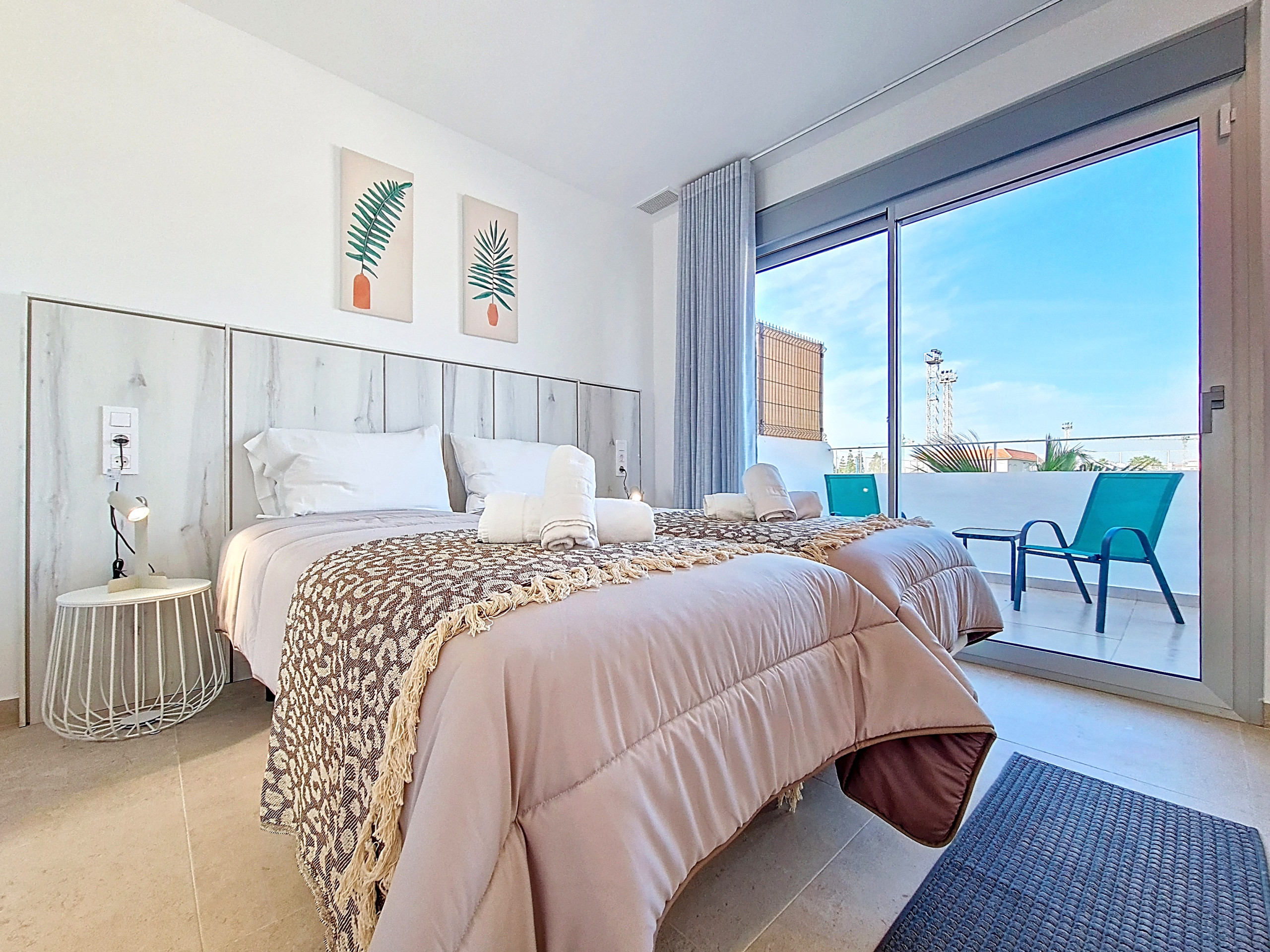 This beautifully presented 3 bedroom villa in Los Alcázares offers a perfect blend of modern design and comfort, making it an ideal choice for families, couples, or friends looking for a relaxing stay.
