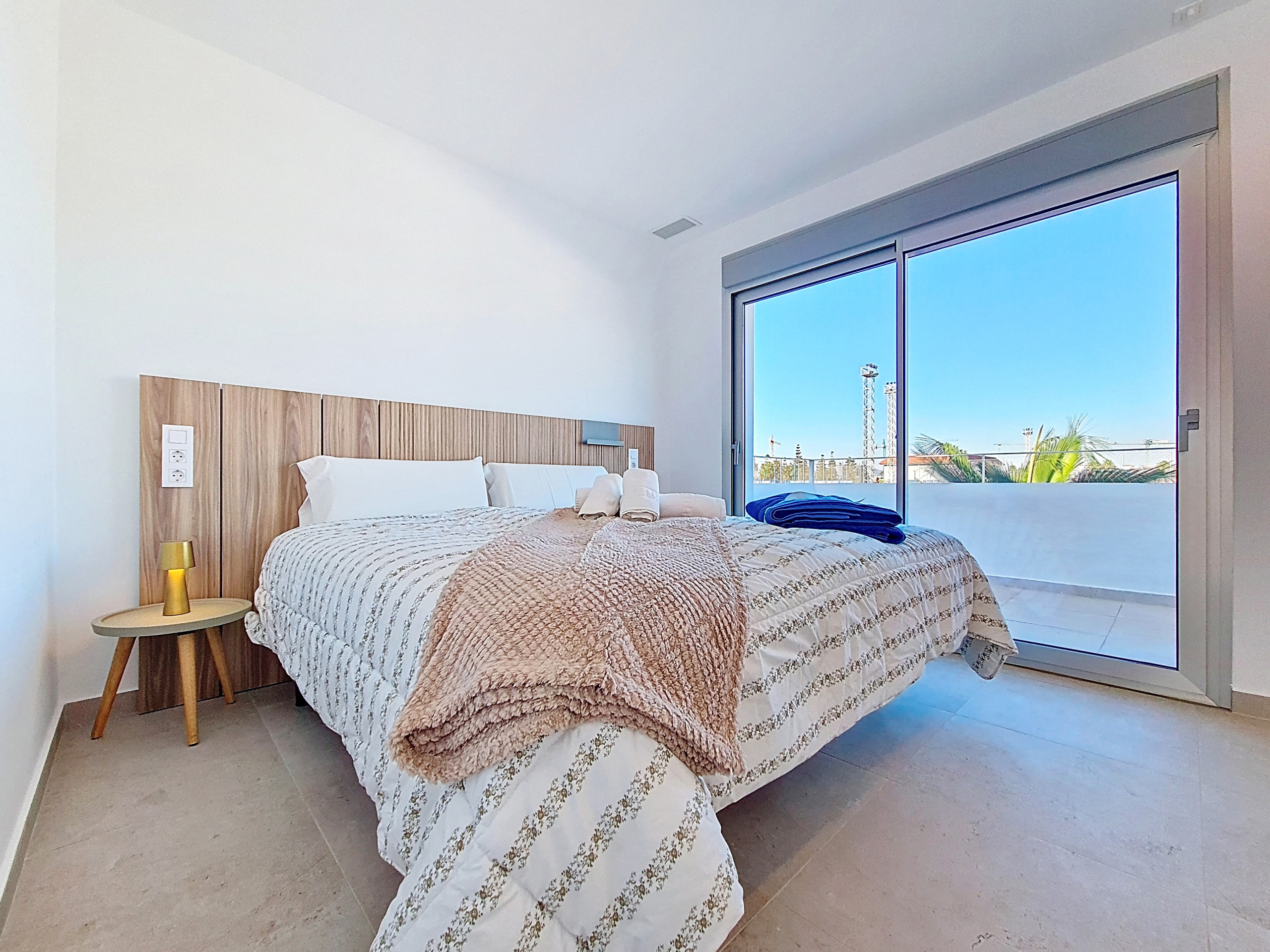 This beautifully presented 3 bedroom villa in Los Alcázares offers a perfect blend of modern design and comfort, making it an ideal choice for families, couples, or friends looking for a relaxing stay.