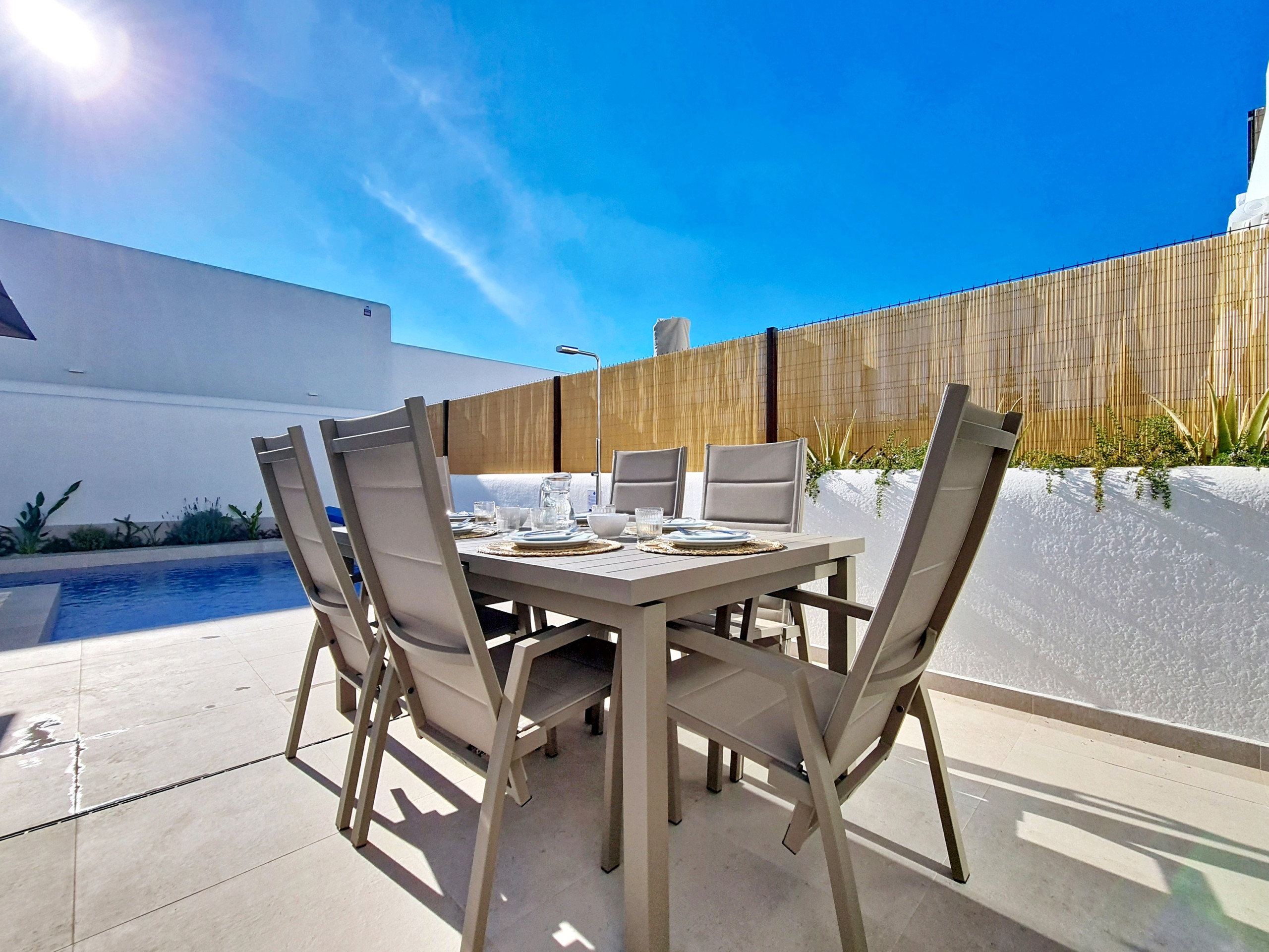 Одно из главных преимуществ виллы — это частная терраса на крыше с удобной зоной отдыха, большим обеденным столом и барбекю: идеальное место для отдыха, приема гостей или наслаждения долгими, спокойными послеполуденными часами под испанским солнцем.