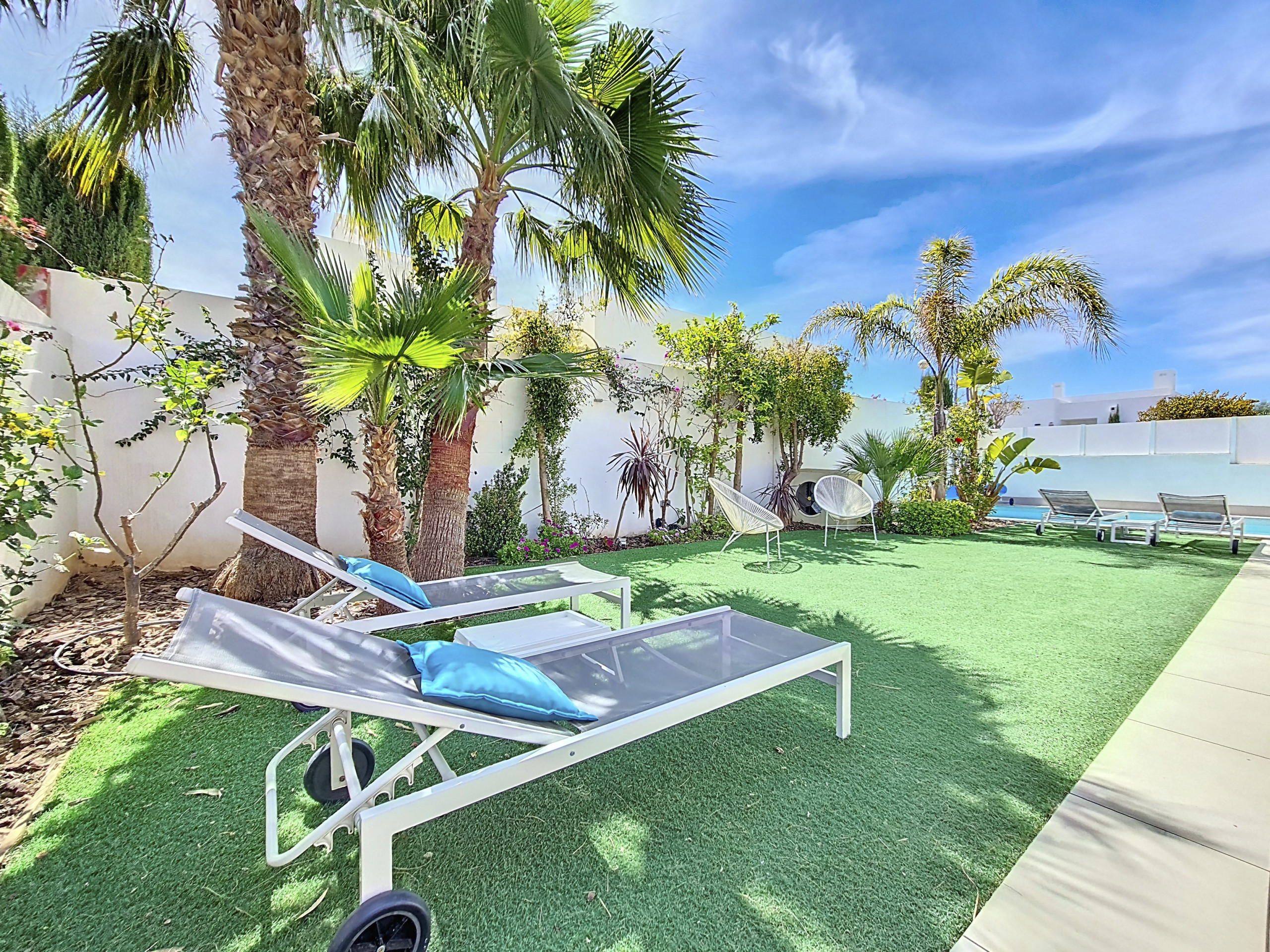Вилла со вкусом меблирована в современном стиле и имеет площадь 139 м². Из него открывается вид на сад и бассейн.