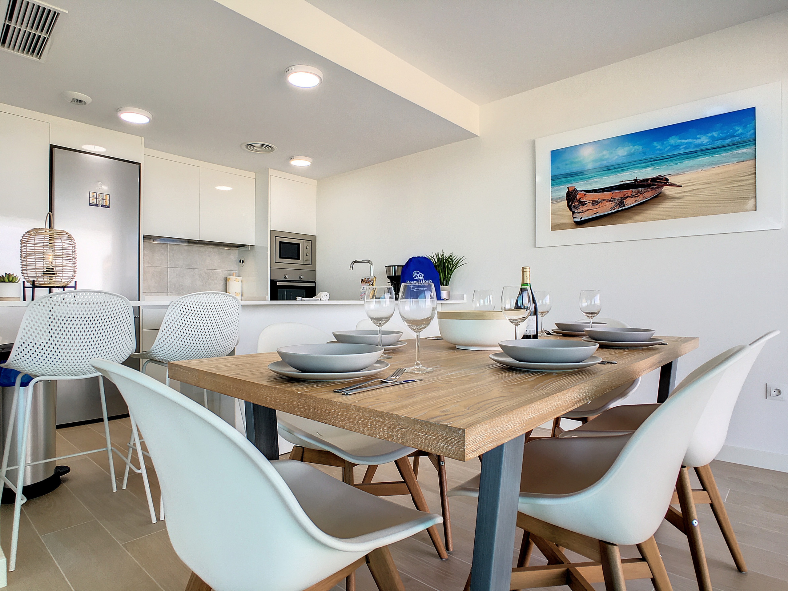 Из квартиры открывается фантастический вид на комплекс, маяк в Кабо де Палос и море. Есть 3 спальни и 2 ванные комнаты, гостиная открытой планировки с кухней и большие стеклянные двери, ведущие на террасу, где вы можете насладиться видом, поесть или расслабиться на диване. Вы также можете выйти на террасу из главной спальни.