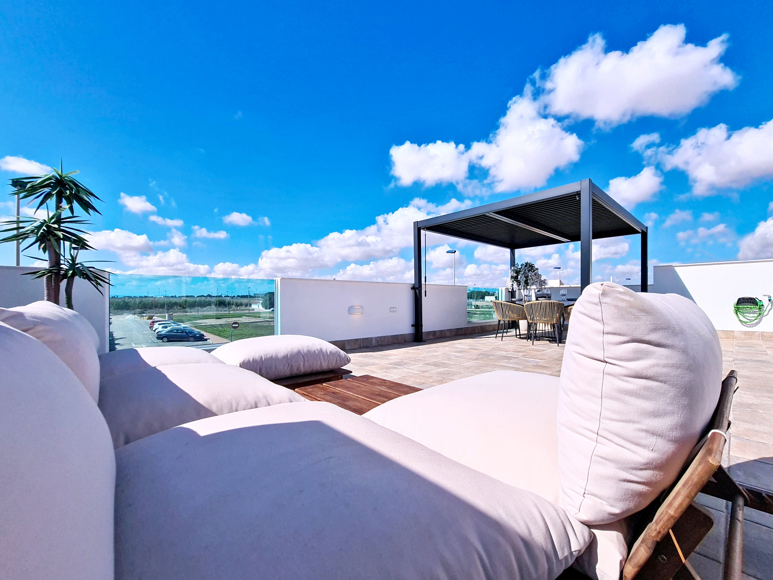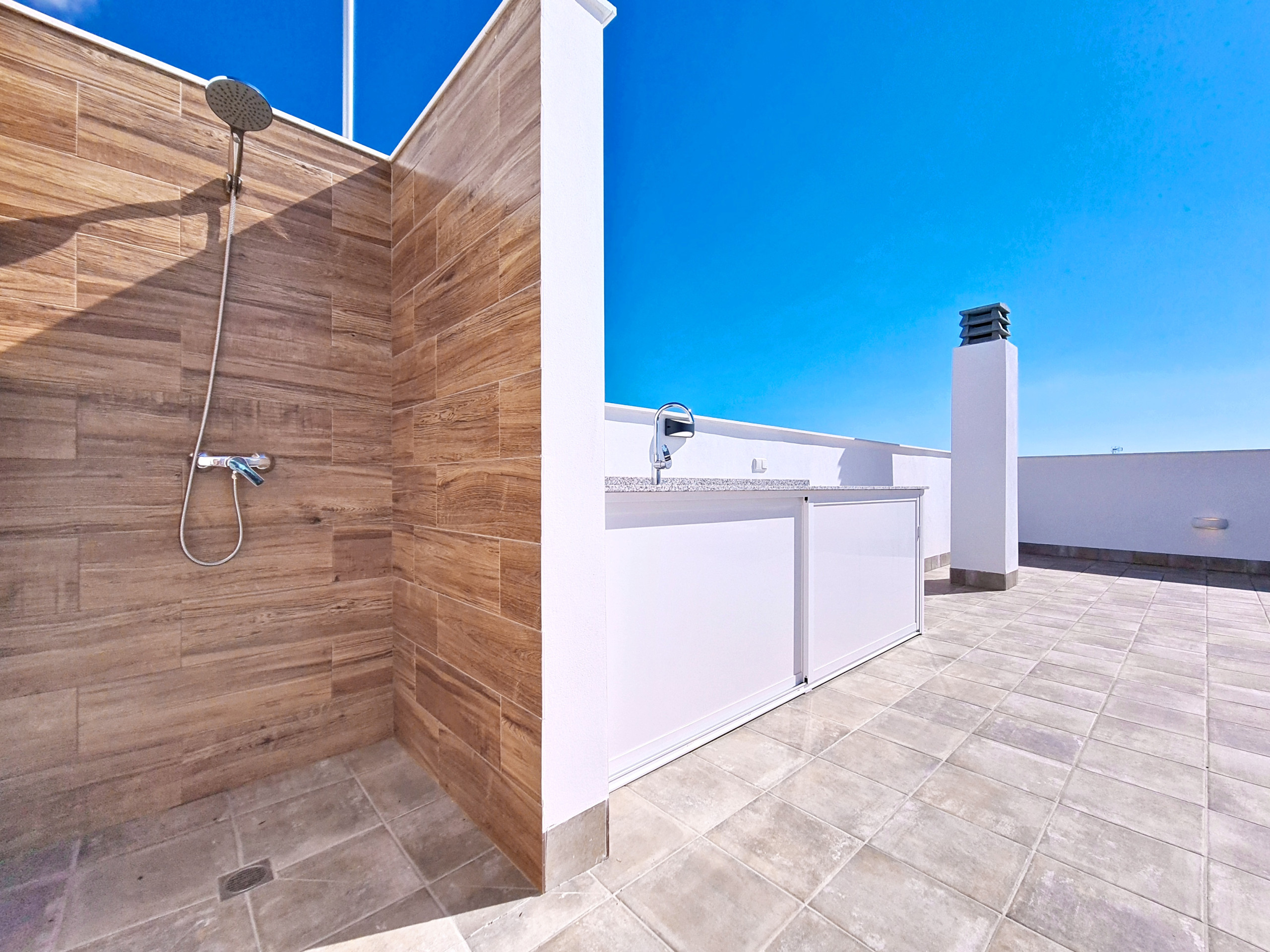 Одной из самых впечатляющих особенностей виллы является просторная частная терраса на крыше, которая была тщательно спроектирована для отдыха и развлечений. Это прекрасное пространство идеально подходит для принятия солнечных ванн или неторопливого отдыха. В ее центре находится просторная и роскошная гидромассажная ванна — идеальное место для отдыха и наслаждения спокойной атмосферой. На террасе также есть большая и стильная летняя кухня, искусно скрытая за электрическими ставнями, предлагающая все необходимое для непринужденной трапезы на свежем воздухе. Эта терраса на крыше с барбекю, удобной зоной отдыха и шезлонгами — идеальное место, чтобы насладиться средиземноморским стилем жизни, независимо от того, наслаждаетесь ли вы теплом дня или отдыхаете под звездами.