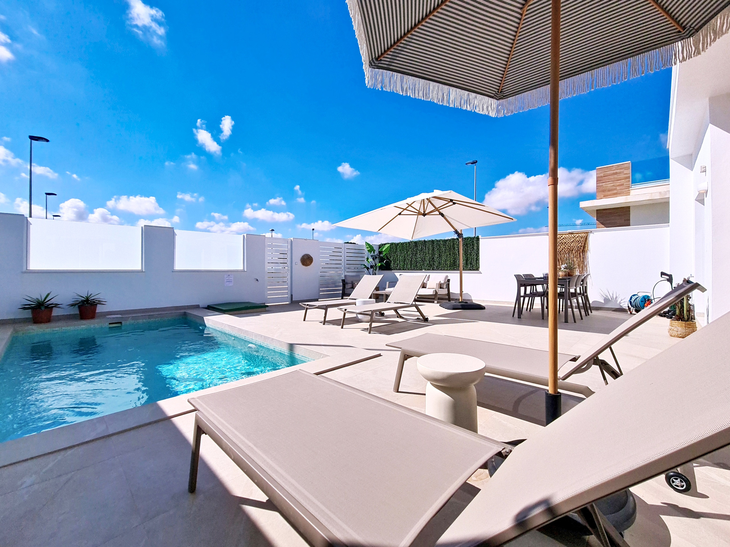 Эта прекрасно оформленная вилла с тремя спальнями в Сан-Хавьере сочетает в себе стильный дизайн и уютную атмосферу — идеальный вариант для семей, пар или друзей, ищущих комфортный отдых в качественной обстановке.