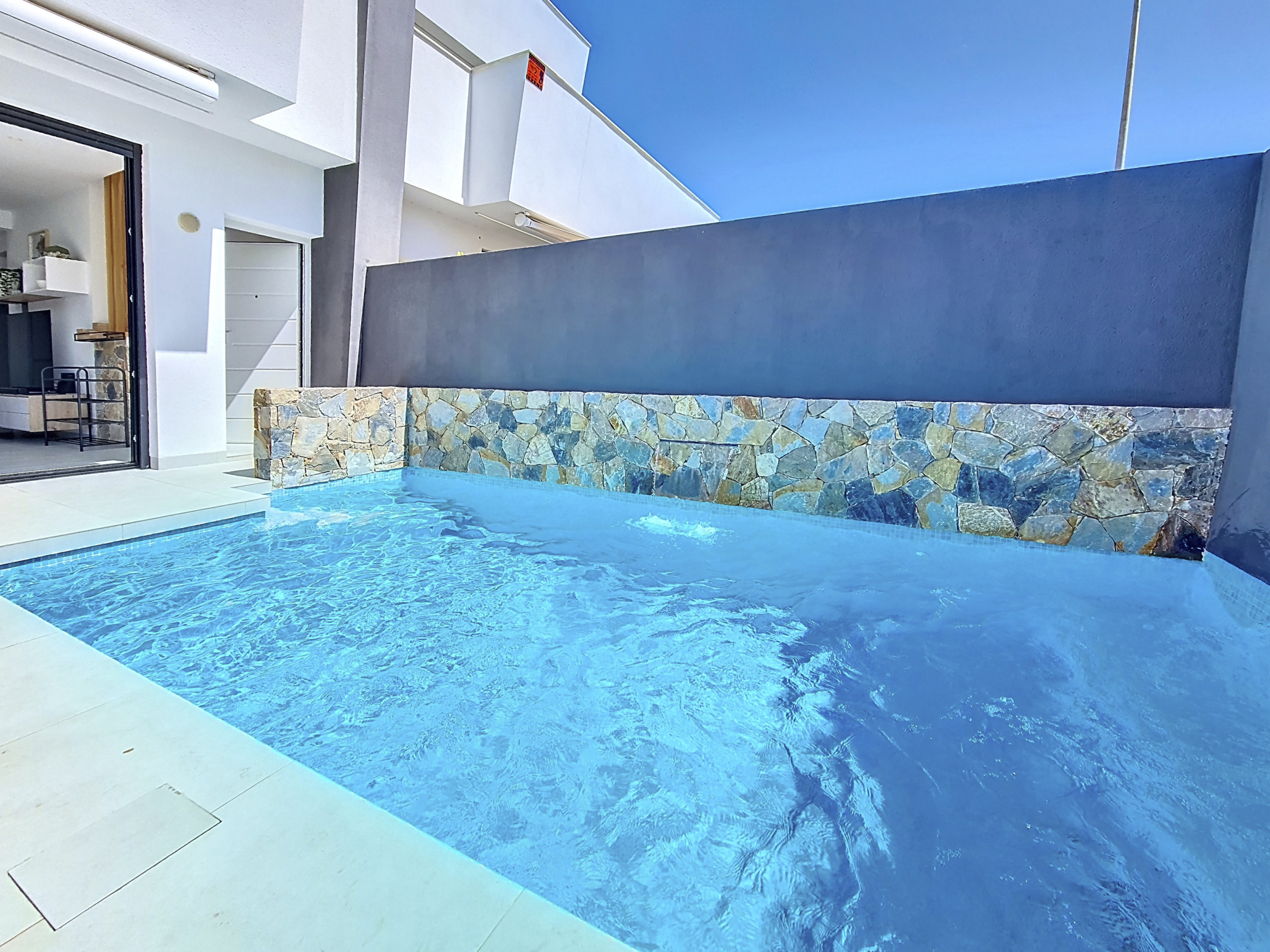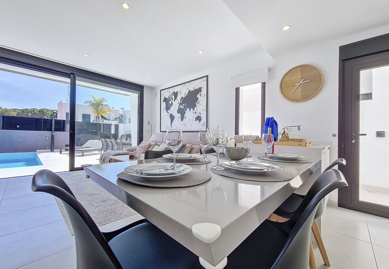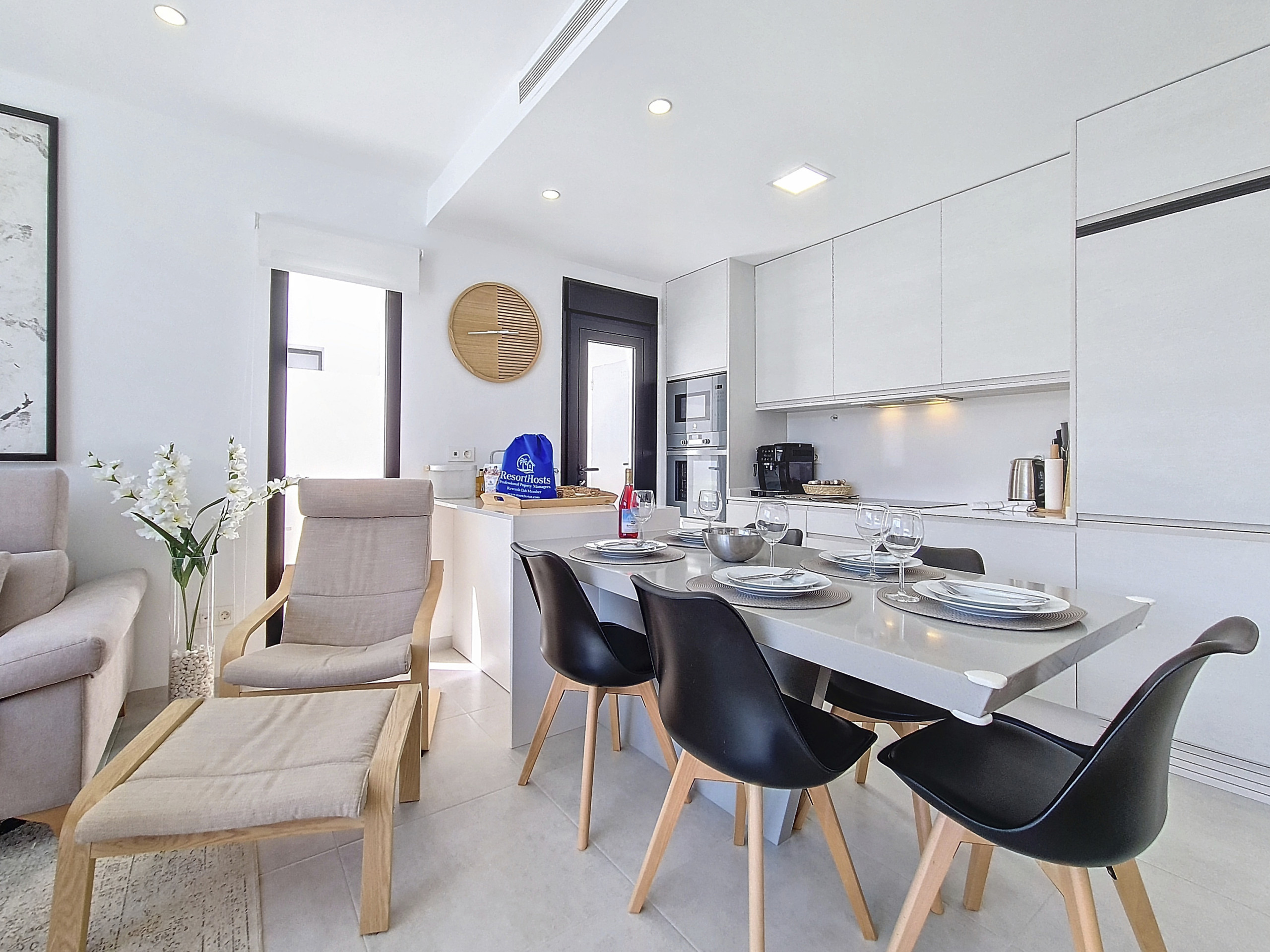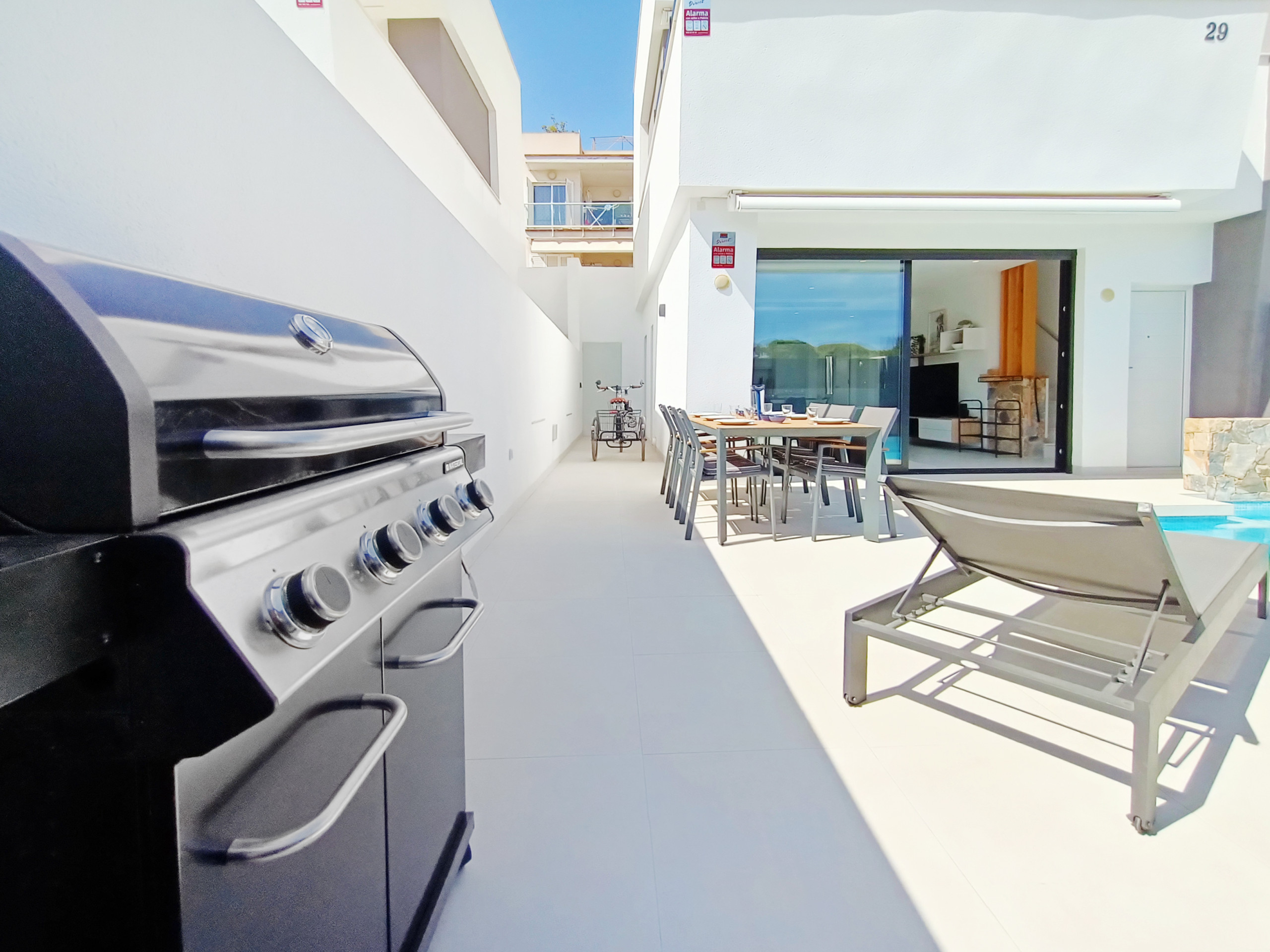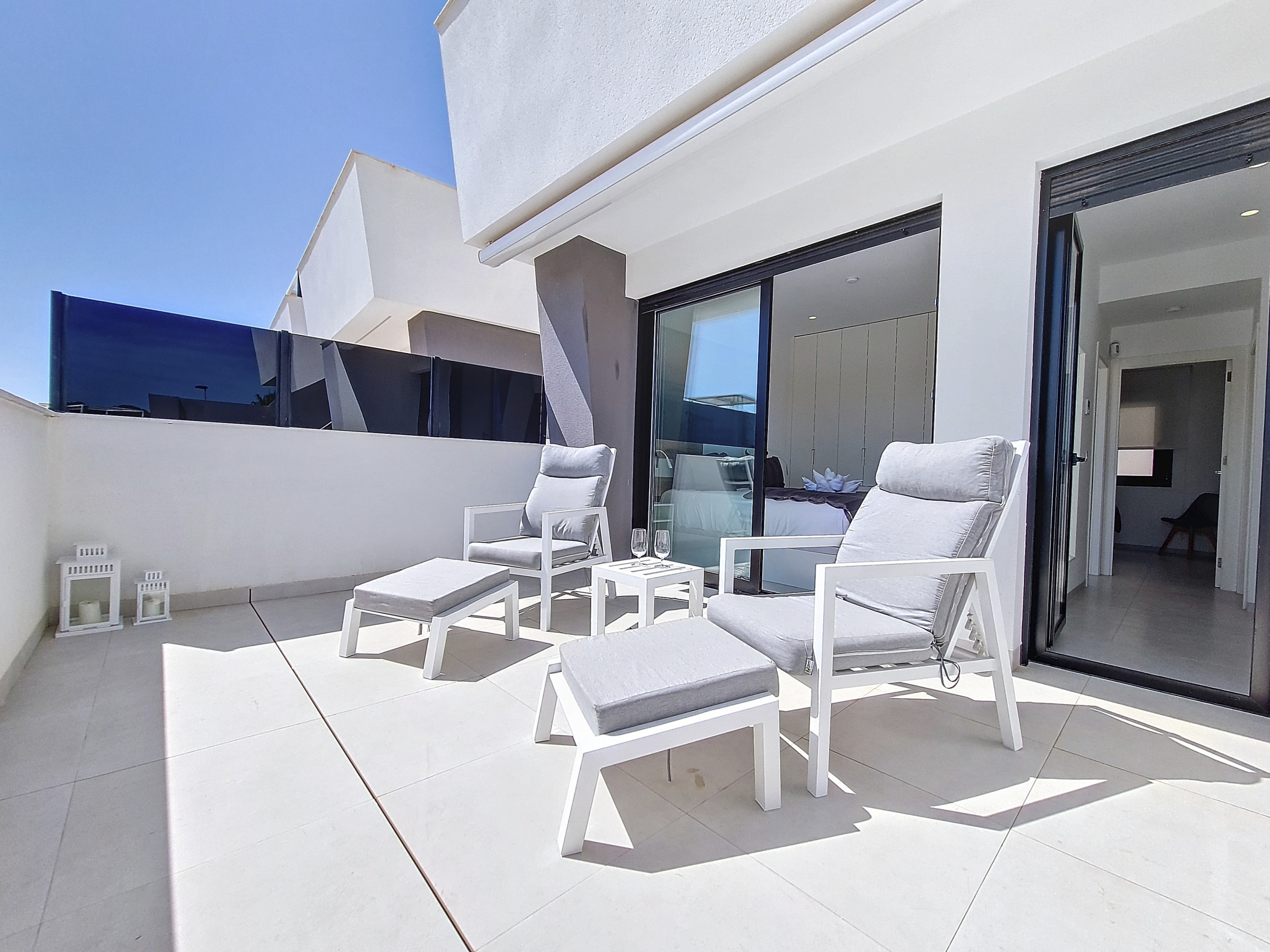 Эта современная вилла с частным бассейном расположена недалеко от песчаных пляжей Средиземного моря и Мар Менор, отмеченных голубым флагом. Вилла имеет 3 спальни на двух этажах, 2 ванные комнаты, полностью оборудованную кухню открытого плана, ведущую в столовую и гостиную. Одна спальня находится на первом этаже с выходом в ванную комнату на первом этаже. На первом этаже вы найдете вторую спальню, которая имеет большие двери патио на переднюю террасу, вторую спальню и ванную комнату.