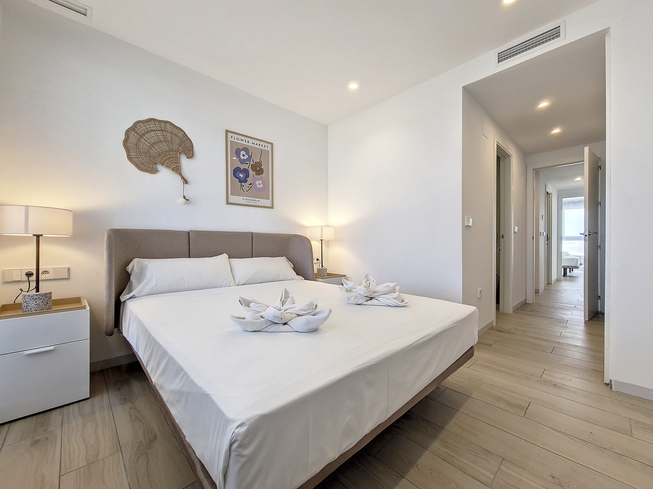 Главная спальня служит местом спокойного отдыха с гардеробной и роскошной ванной комнатой с высококачественной отделкой. Вторая спальня не менее привлекательна и имеет хорошо оборудованную гостевую ванную комнату с душевой кабиной.