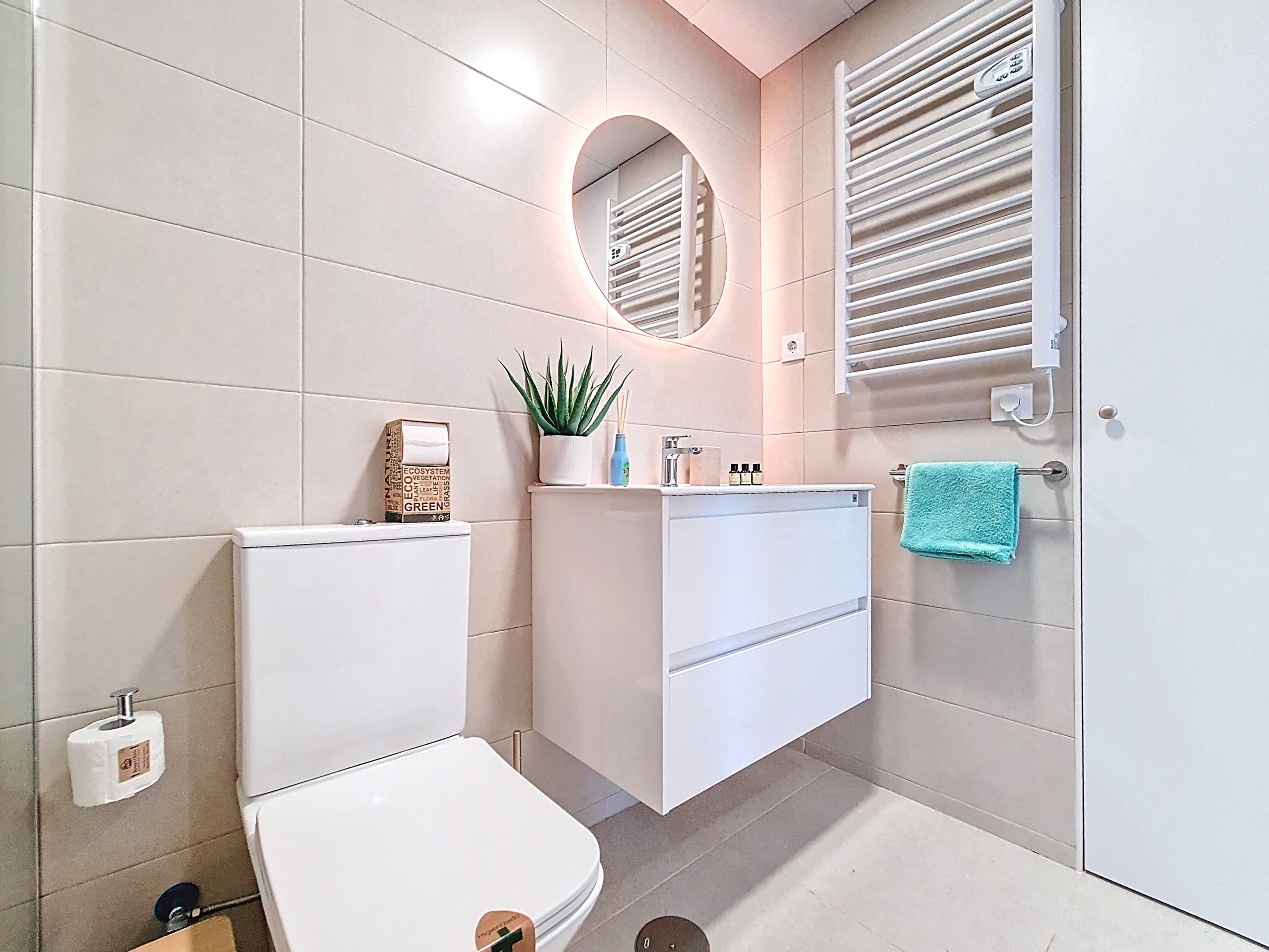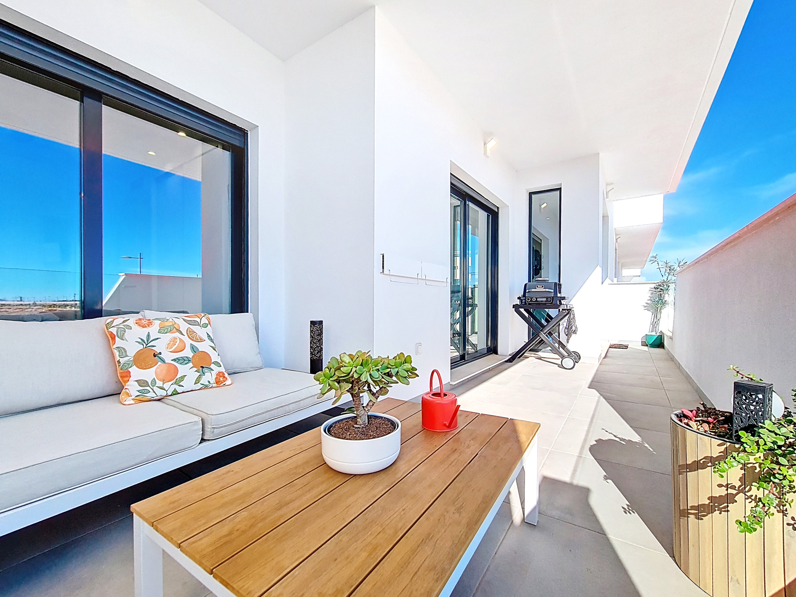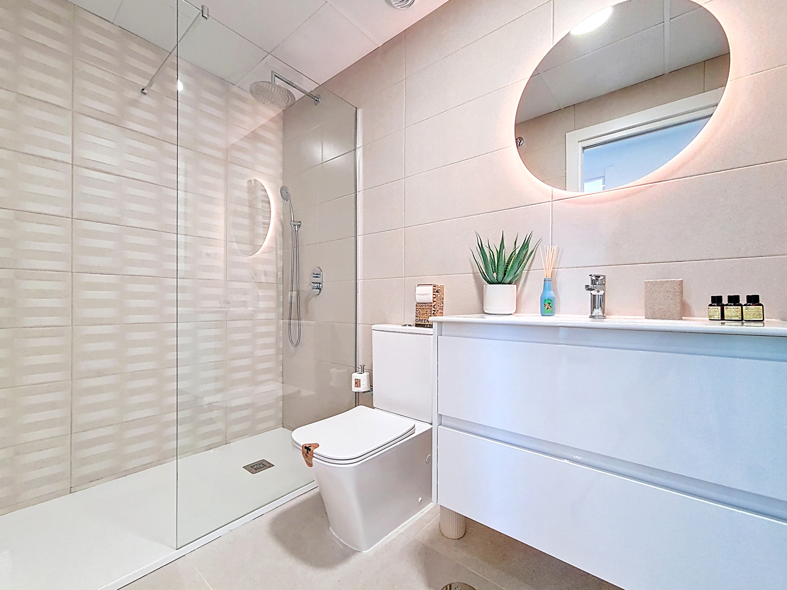 В светлой и со вкусом обставленной главной спальне есть ванная комната с душевой кабиной и выходом на второй балкон. Вторая спальня, не менее светлая и уютная, идеально подходит для детей или гостей. Элегантная гостевая ванная комната, также с душевой кабиной, расположена между двумя спальнями для дополнительного удобства. Эти стильные апартаменты предлагают современные удобства, такие как кондиционер, смарт-телевизор и высокоскоростной Wi-Fi, чтобы вы оставались в прохладе и на связи во время вашего пребывания. Апартаменты предлагают доступ к ухоженному общему бассейну с гидромассажной ванной и детским бассейном. Также есть небольшой открытый тренажерный зал и детская игровая площадка. Это идеальное место, чтобы охладиться или расслабиться с семьей или друзьями под средиземноморским солнцем.